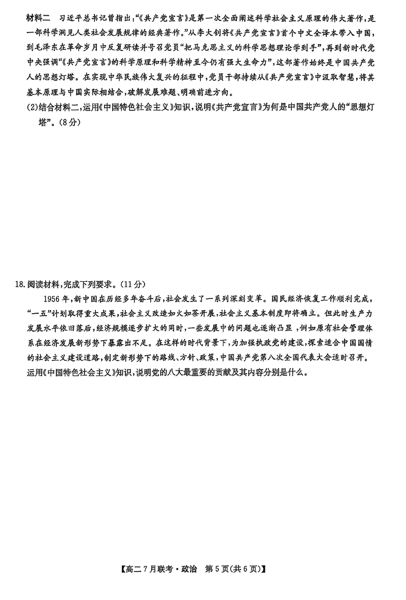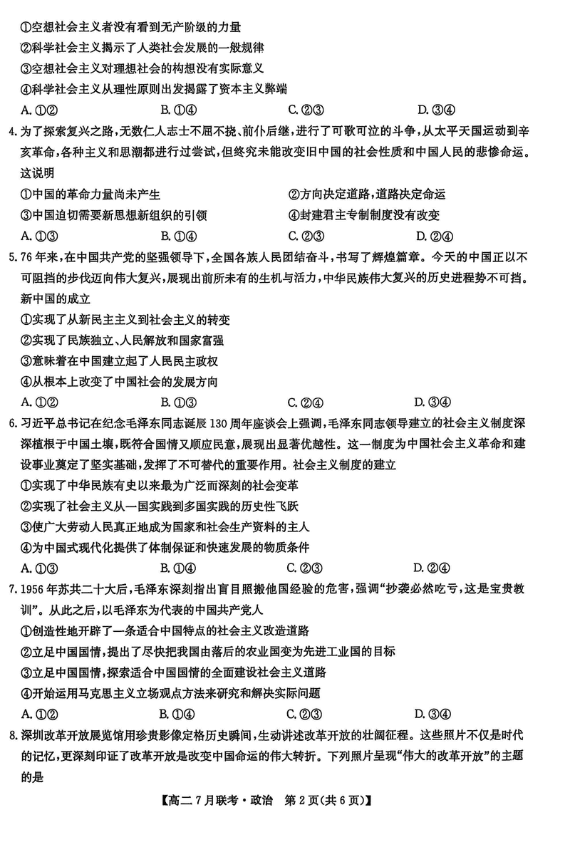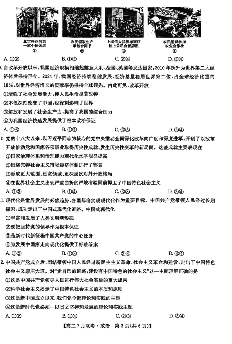 洛阳强基联盟2025年高二7月联考政治试题及答案 时间:2025-07-14 河南 文综试题 河南洛阳强基联盟2025年高二7月联考政治考试已于近日开考,为方便考生考后及时查看考试情况,查漏补缺、弥补不足,本文整理了试题答案解析相关信息! 汇总:河南洛阳市强基联盟2025年高二7月联考 政治试题及答案解析