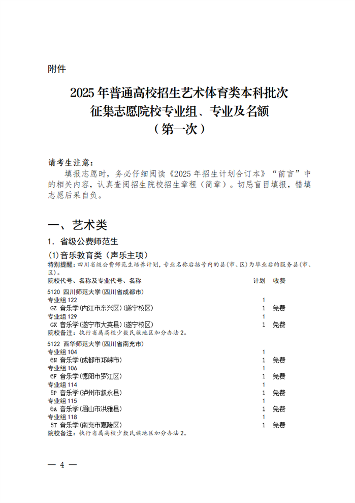 四川省2025年艺体类本科批次第一次征集志愿的通知