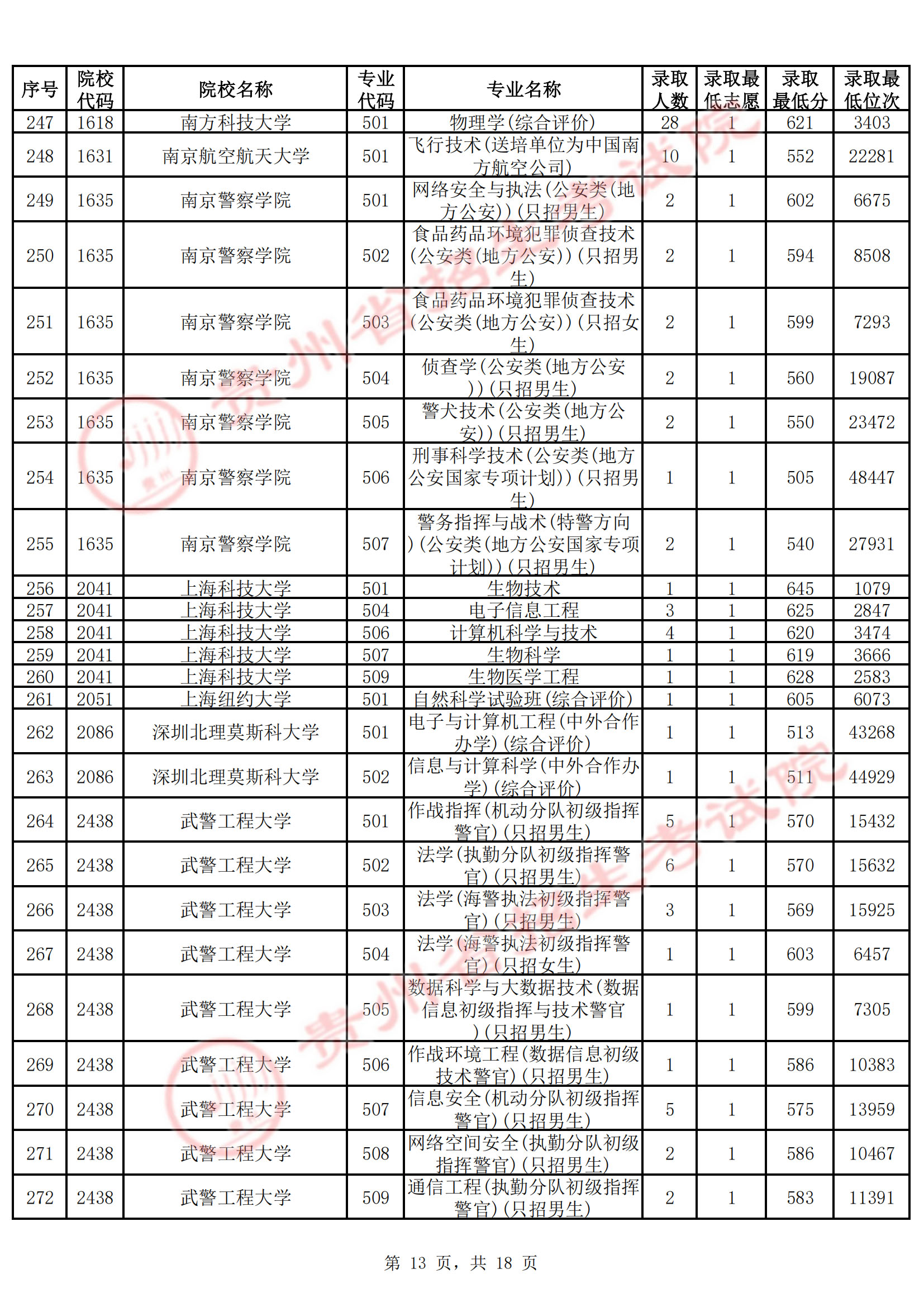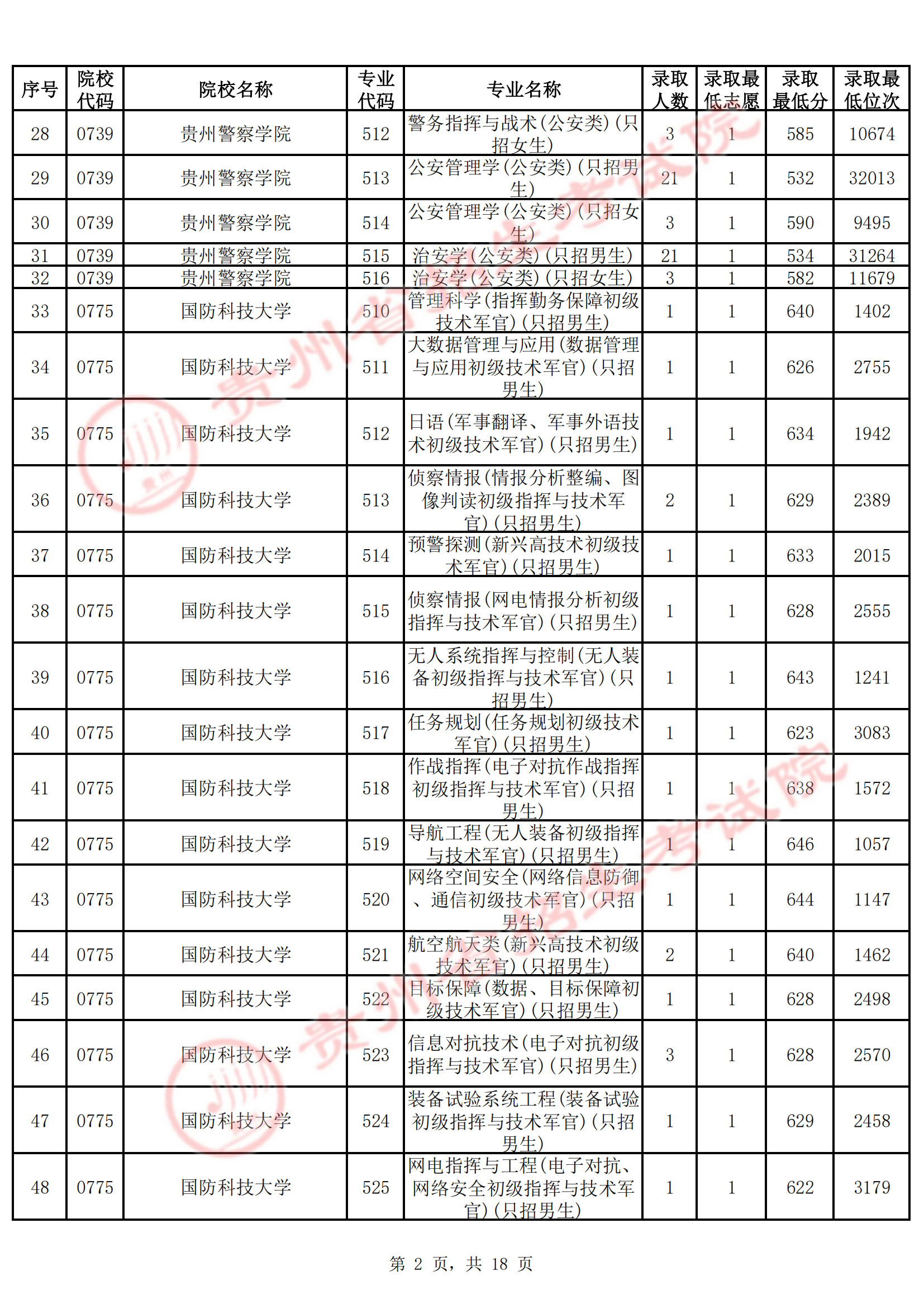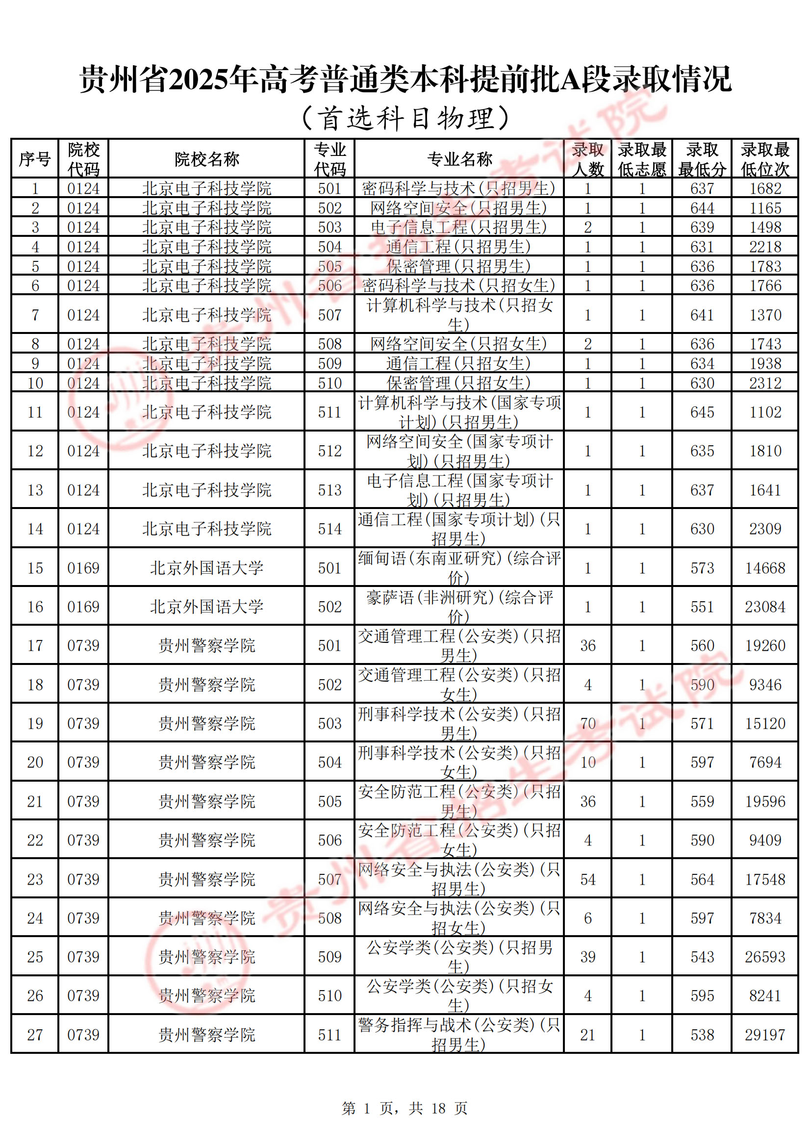 贵州省2025年高考普通类本科提前批A段录取情况(首选科目物理)已发布,具体内容如下: