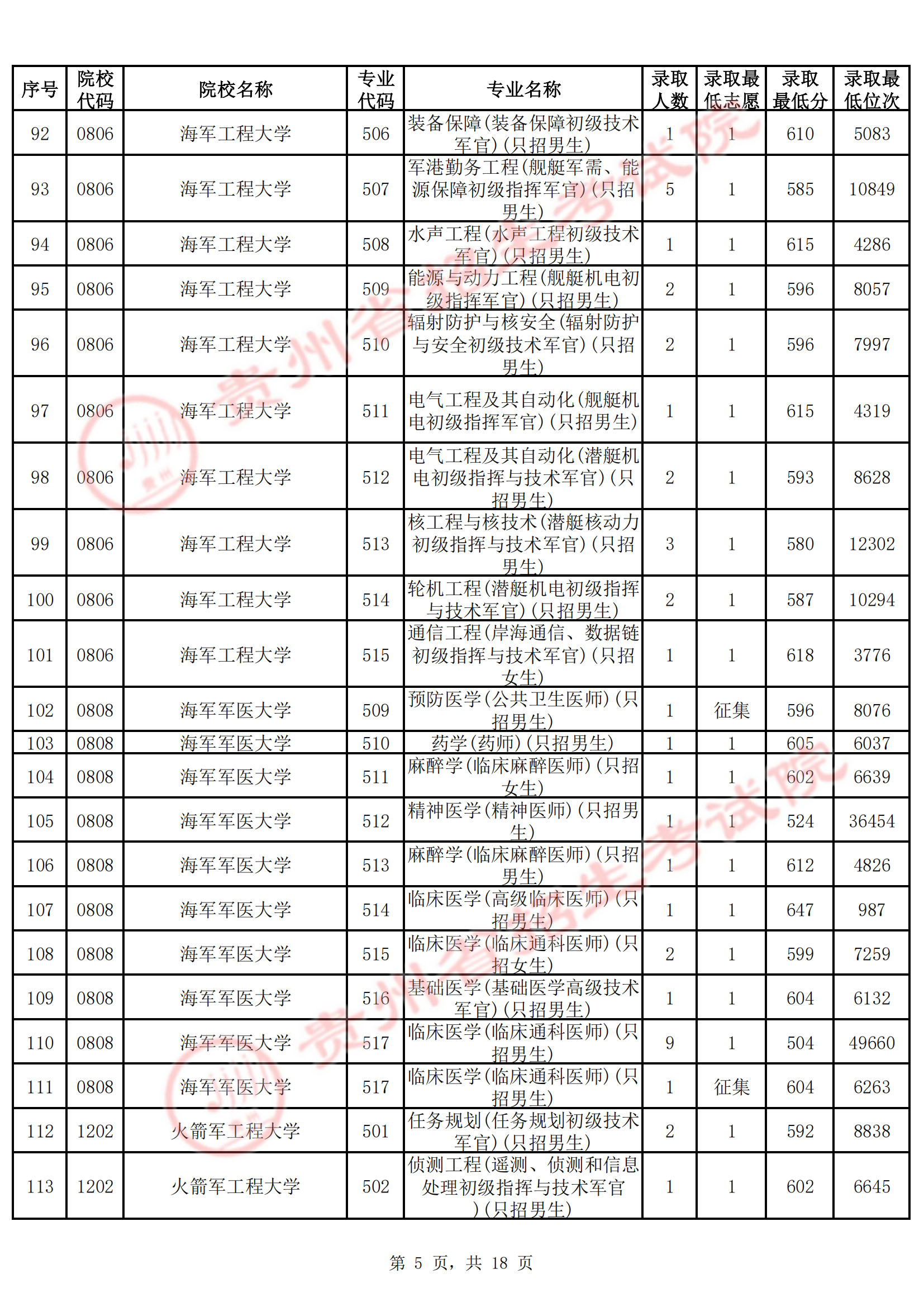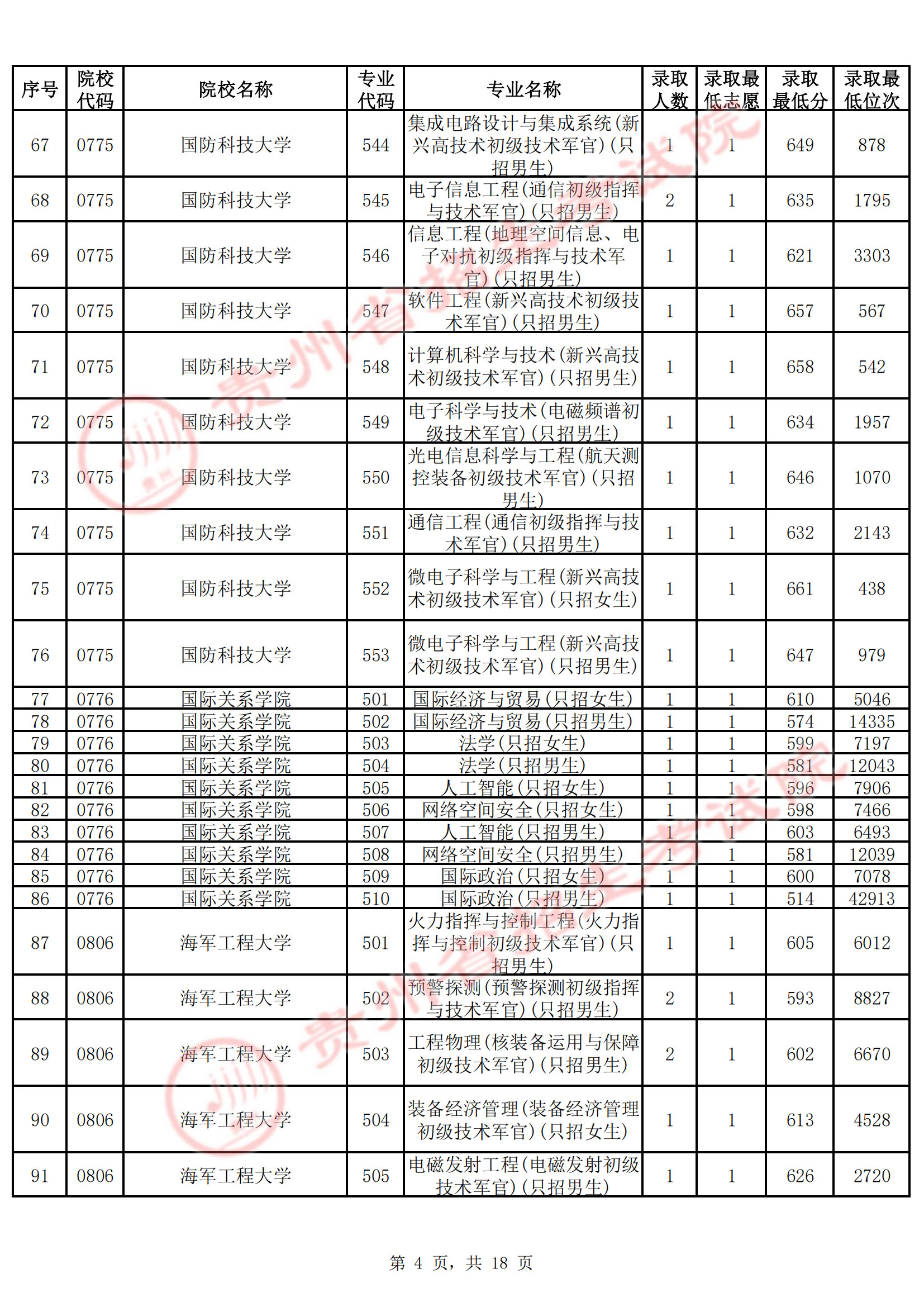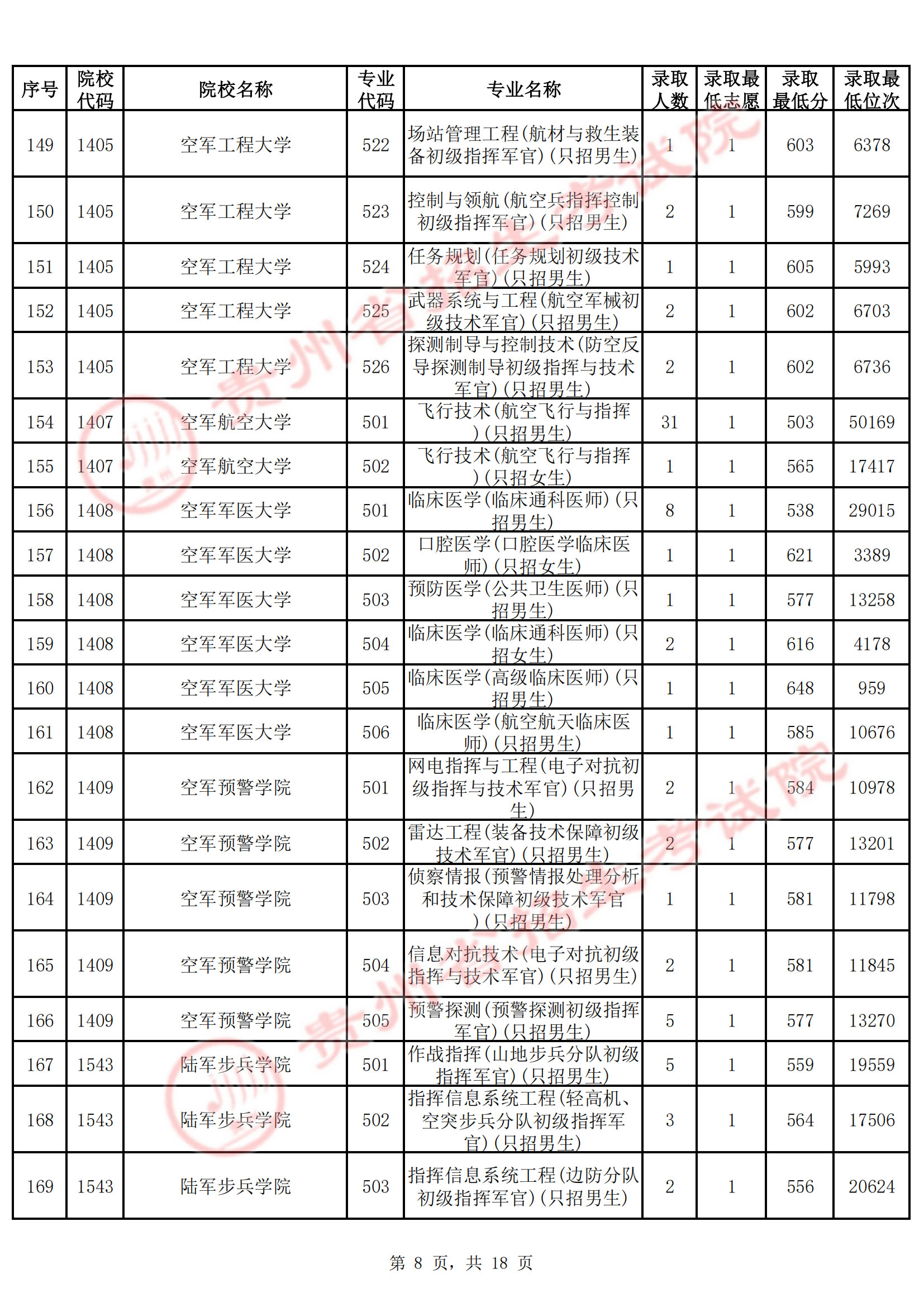 2025年军队院校在贵州省招生面试和体检资格线公布