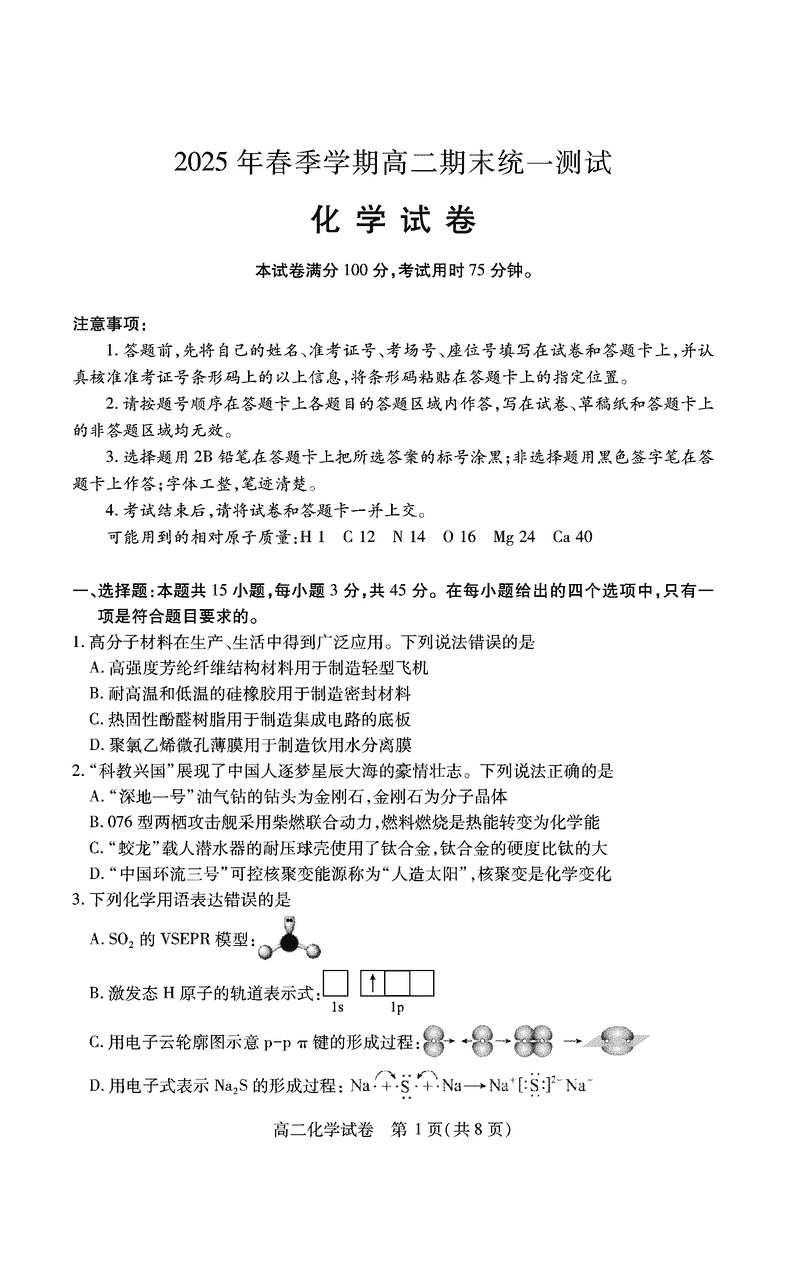 黄石市2025春季学期高二期末统测化学试题及答案 时间:2025-07-18 湖北 理综试题 湖北黄石市2025春季学期高二期末统测化学考试已于近日开考,为方便考生考后及时查看考试情况,查漏补缺、弥补不足,本文整理了试题答案解析相关信息! 汇总:黄石市2025春季学期高二期末统测试题及答案汇总 化学试题及答案解析