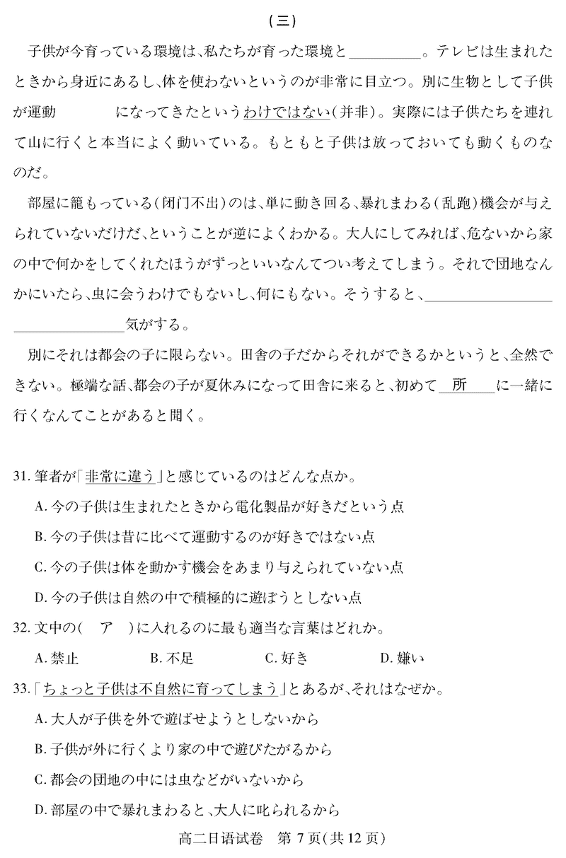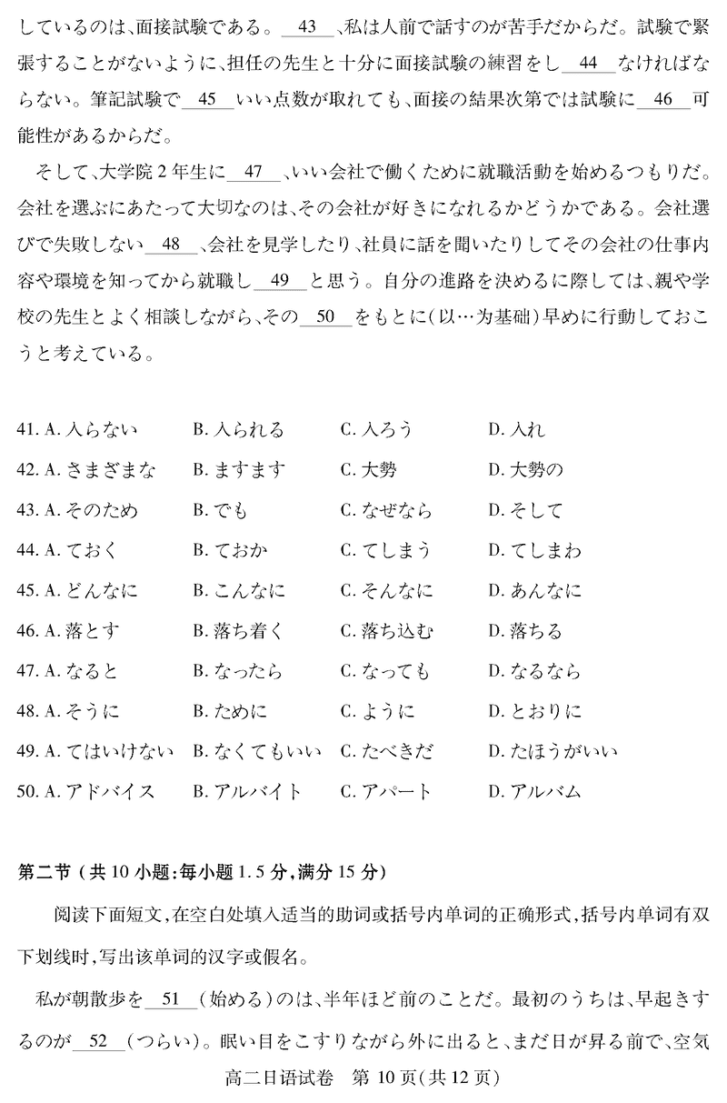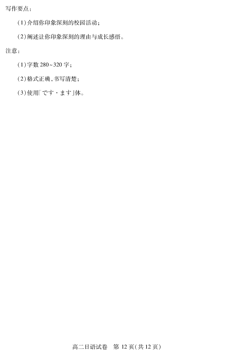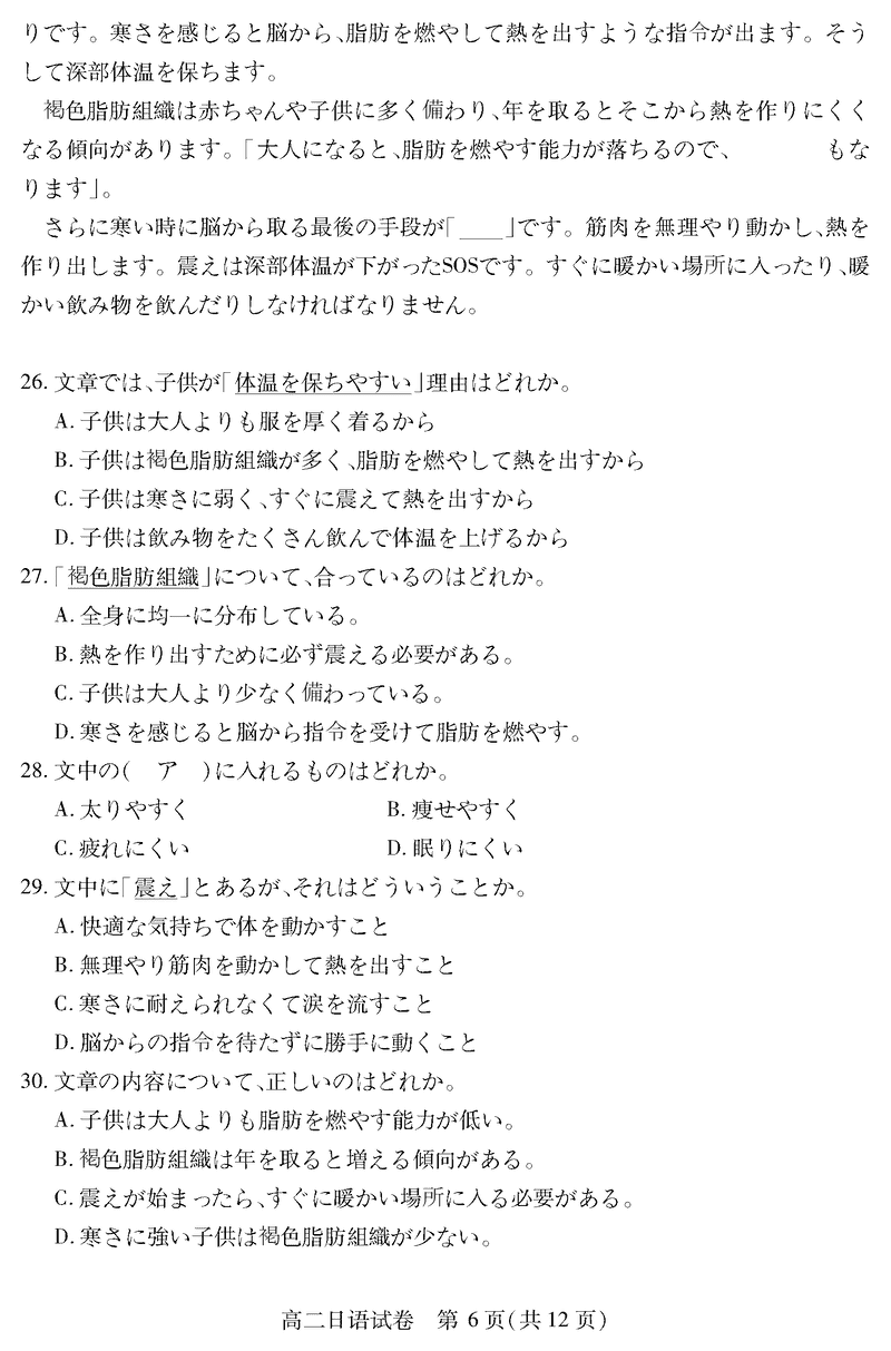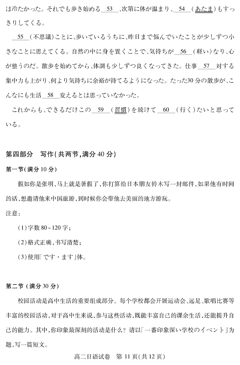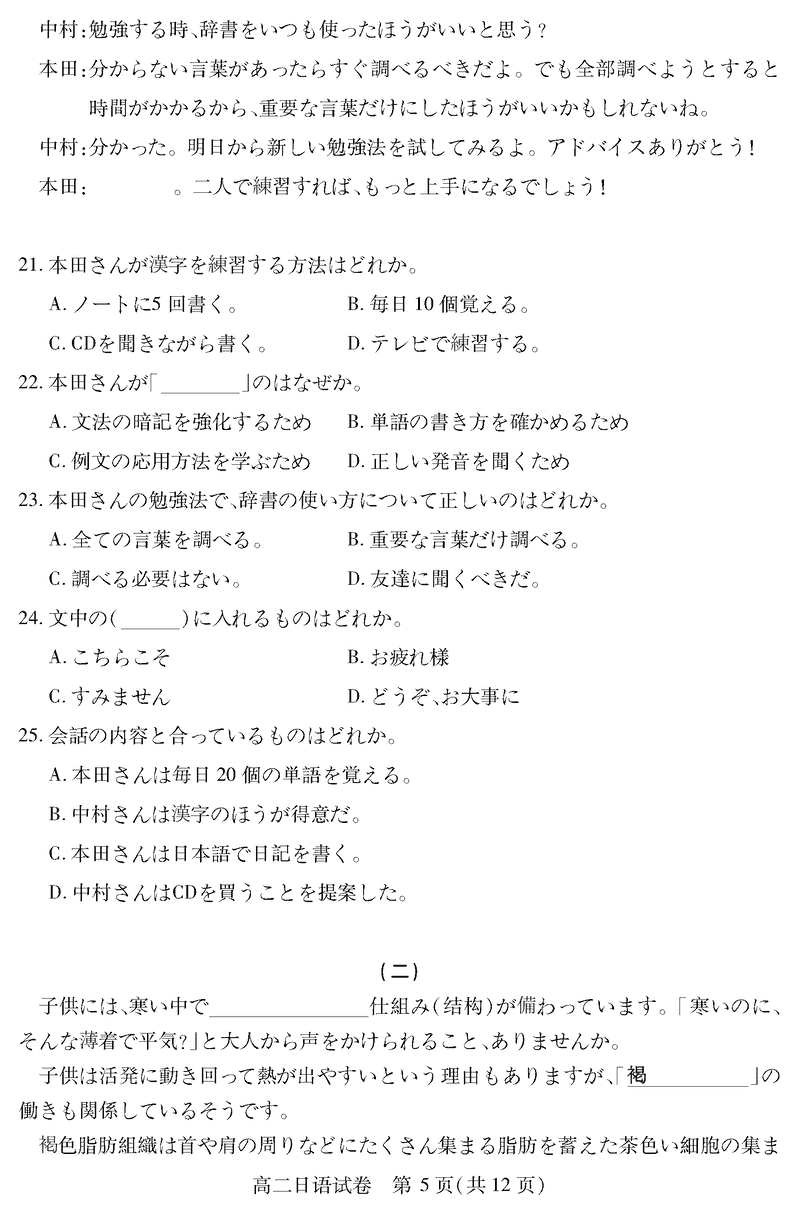 襄阳市2025年7月高二期末统测日语试题及答案 时间:2025-07-18 湖北 英语试题 湖北省襄阳市2025年7月高二期末统测日语考试已于近日开考,为方便考生考后及时查看考试情况,查漏补缺、弥补不足,本文整理了试题答案解析相关信息! 汇总:湖北省襄阳市2025年7月高二期末统测 日语试题及答案解析