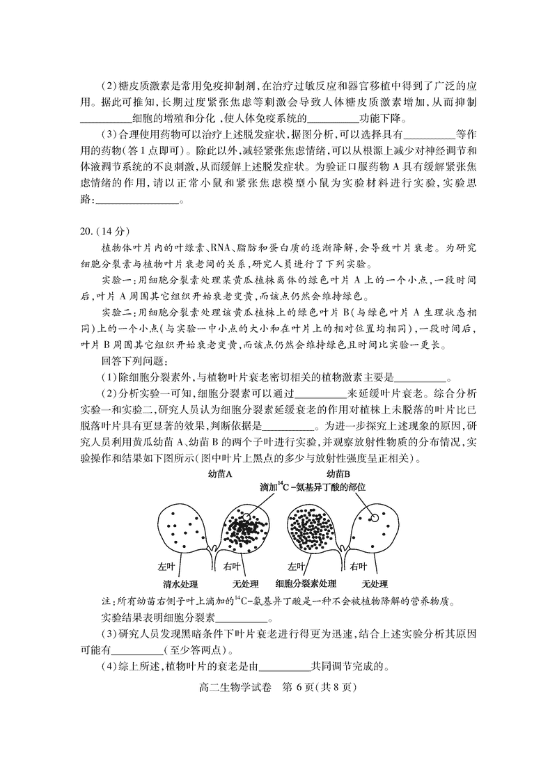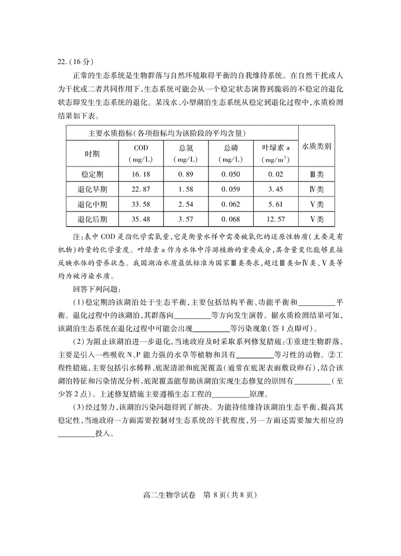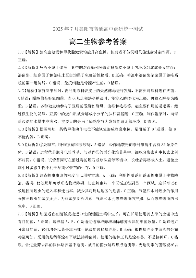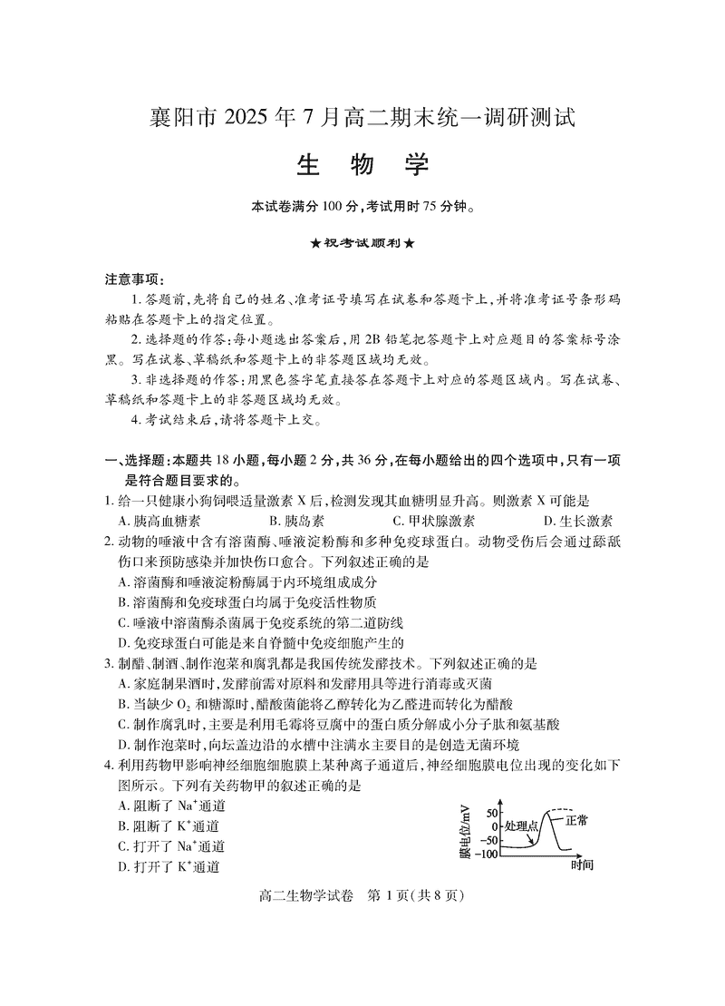襄阳市2025年7月高二期末统测生物试题及答案 时间:2025-07-18 湖北 理综试题 湖北省襄阳市2025年7月高二期末统测生物考试已于近日开考,为方便考生考后及时查看考试情况,查漏补缺、弥补不足,本文整理了试题答案解析相关信息! 汇总:湖北省襄阳市2025年7月高二期末统测 生物试题及答案解析