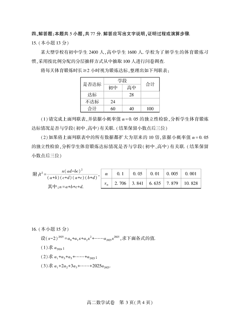 襄阳市2025年7月高二期末统测数学试题及答案 时间:2025-07-18 湖北 数学试题 湖北省襄阳市2025年7月高二期末统测数学考试已于近日开考,为方便考生考后及时查看考试情况,查漏补缺、弥补不足,本文整理了试题答案解析相关信息! 汇总:湖北省襄阳市2025年7月高二期末统测 数学试题及答案解析