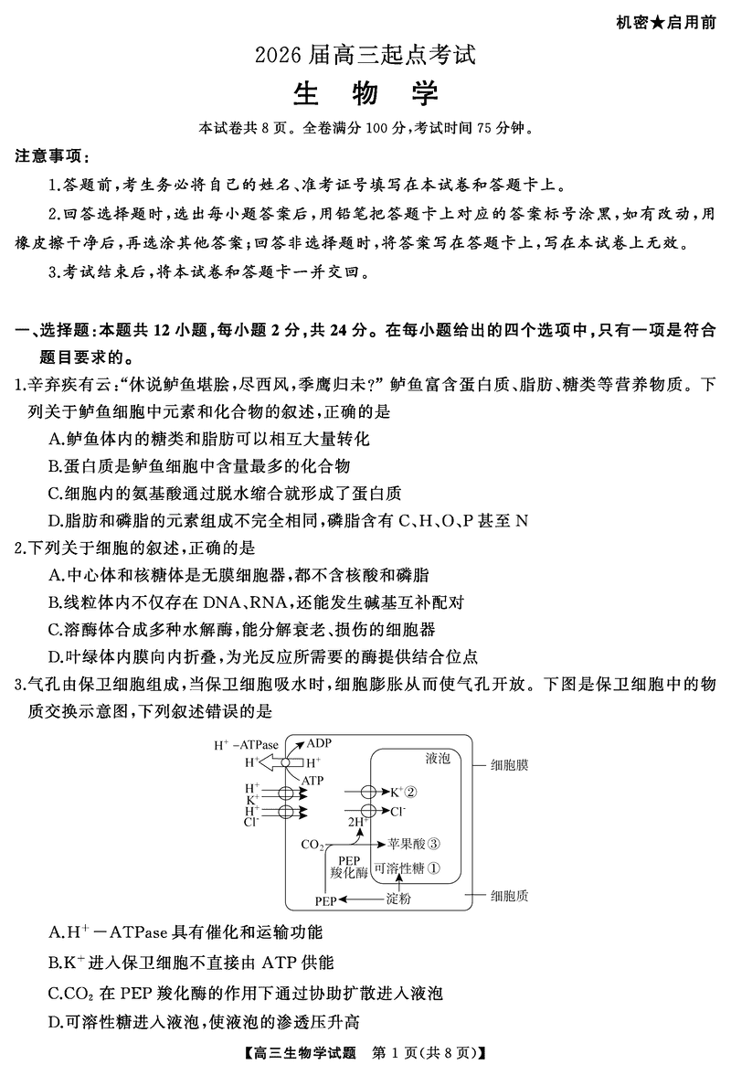 湖南省·天壹名校联盟2026届高三起点考生物试题及答案 时间:2025-07-18 湖南 理综试题 湖南省·天壹名校联盟2026届高三起点考生物考试已于近日开考,为方便考生考后及时查看考试情况,查漏补缺、弥补不足,本文整理了试题答案解析相关信息! 汇总:湖南省·天壹名校联盟2026届高三起点考试 生物试题及答案解析