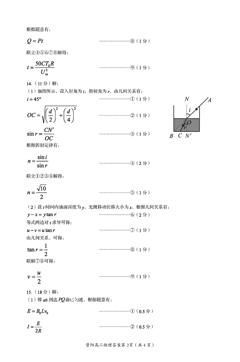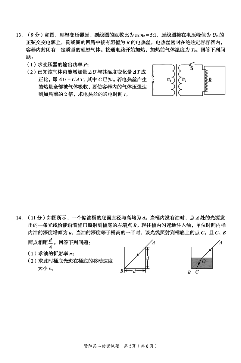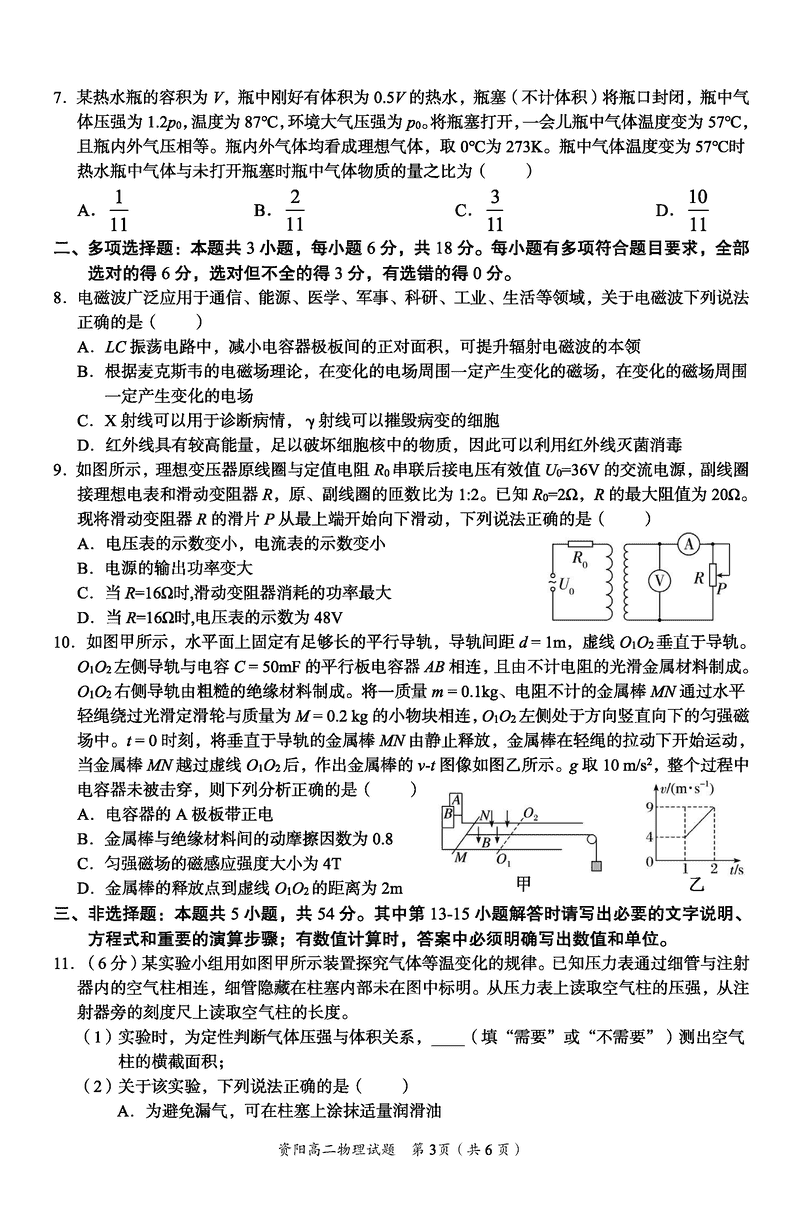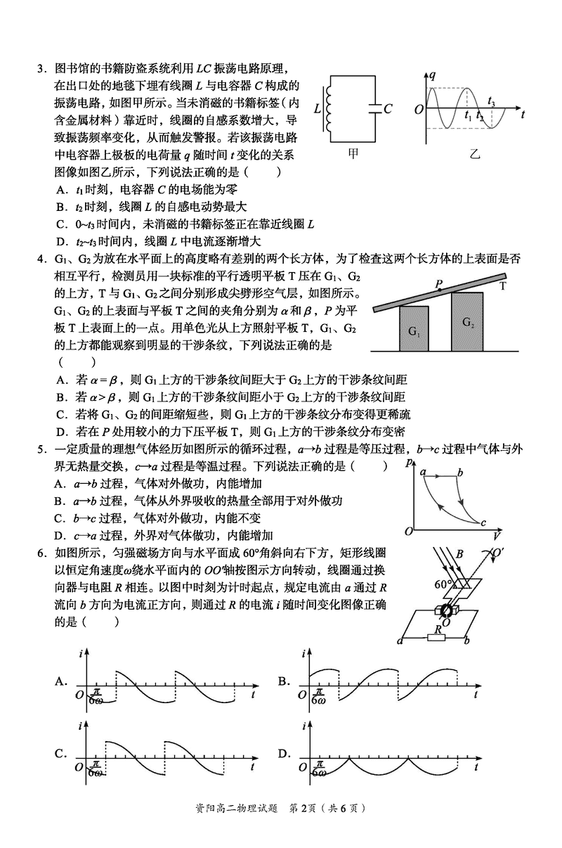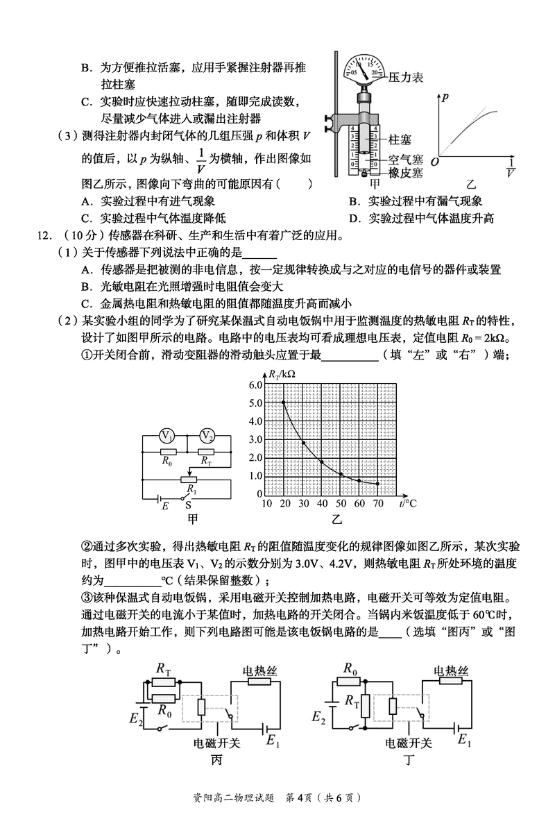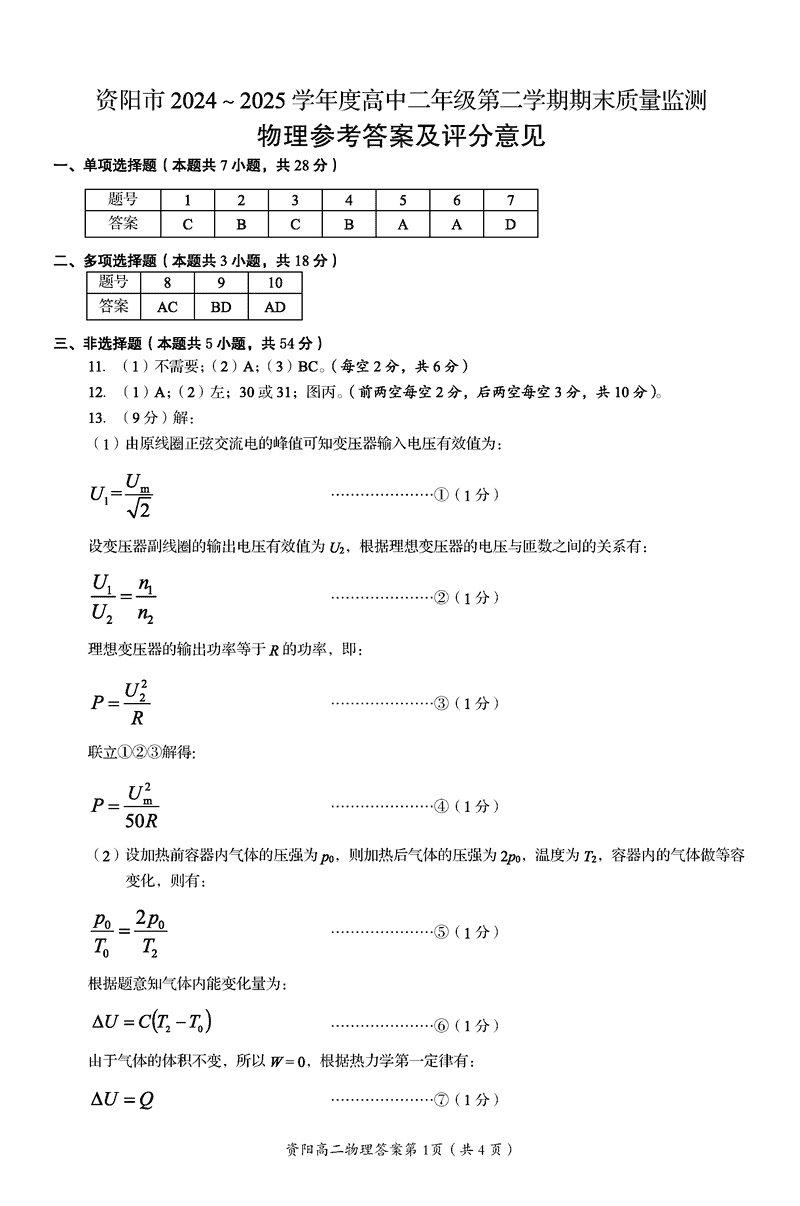 资阳市2024-2025学年高二下学期期末物理试题及答案 时间:2025-07-18 四川 理综试题 四川省资阳市2024-2025学年高二下学期期末物理考试已于近日开考,为方便考生考后及时查看考试情况,查漏补缺、弥补不足,本文整理了试题答案解析相关信息! 汇总:资阳市2024-2025学年高二下学期期末 物理试题及答案解析