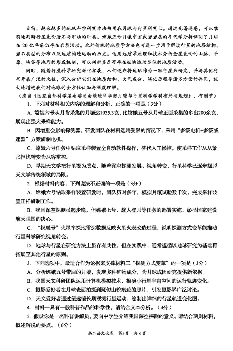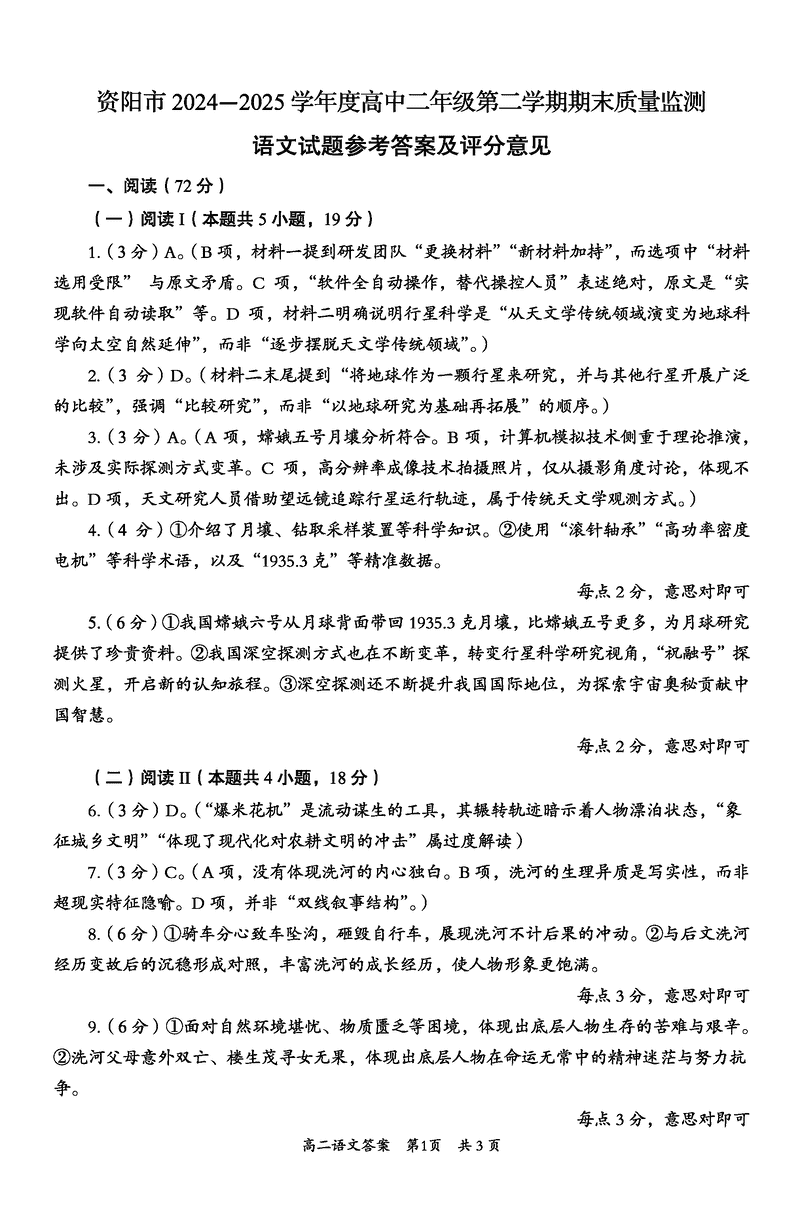 资阳市2024-2025学年高二下学期期末语文试题及答案 时间:2025-07-18 四川 语文试题 四川省资阳市2024-2025学年高二下学期期末语文考试已于近日开考,为方便考生考后及时查看考试情况,查漏补缺、弥补不足,本文整理了试题答案解析相关信息! 汇总:资阳市2024-2025学年高二下学期期末 语文试题及答案解析