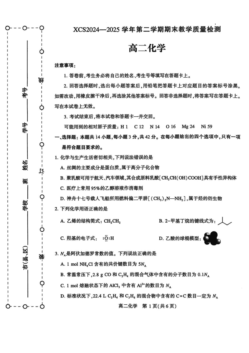 许昌市2024-2025学年高二下学期7月期末化学试题及答案 时间:2025-07-18 河南 理综试题 河南省许昌市2024-2025学年高二下学期7月期末化学考试已于近日开考,为方便考生考后及时查看考试情况,查漏补缺、弥补不足,本文整理了试题答案解析相关信息! 汇总:许昌市2024-2025学年高二下学期7月期末 化学试题及答案解析