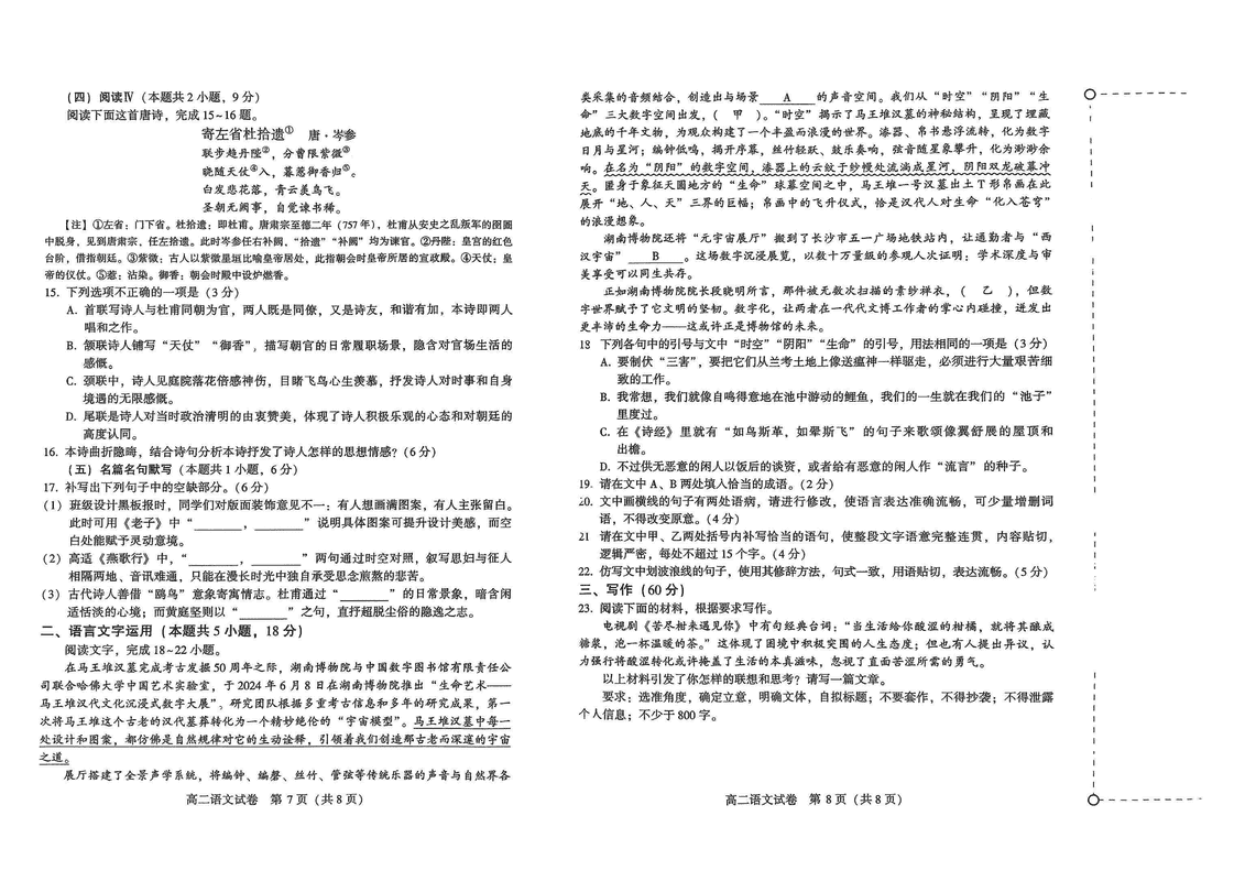 许昌市2024-2025学年高二下学期7月期末语文试题及答案 时间:2025-07-18 河南 语文试题 河南省许昌市2024-2025学年高二下学期7月期末语文考试已于近日开考,为方便考生考后及时查看考试情况,查漏补缺、弥补不足,本文整理了试题答案解析相关信息! 汇总:许昌市2024-2025学年高二下学期7月期末 语文试题及答案解析