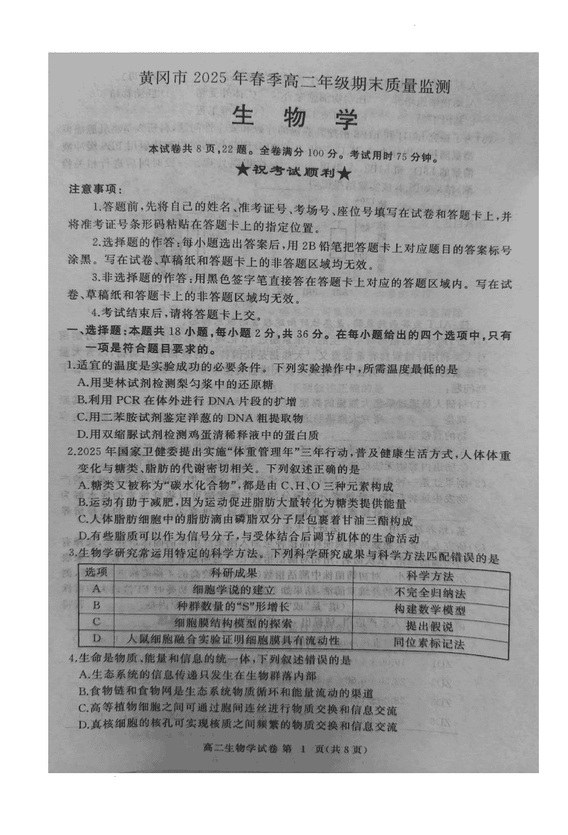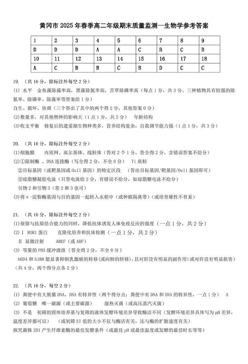 黄冈市2024-2025学年高二期末质量监测生物试题及答案 时间:2025-07-18 湖北 理综试题 湖北省黄冈市2024-2025学年高二期末质量监测生物考试已于近日开考,为方便考生考后及时查看考试情况,查漏补缺、弥补不足,本文整理了试题答案解析相关信息! 汇总:黄冈市2024-2025学年高二期末质量监测 生物试题及答案解析
