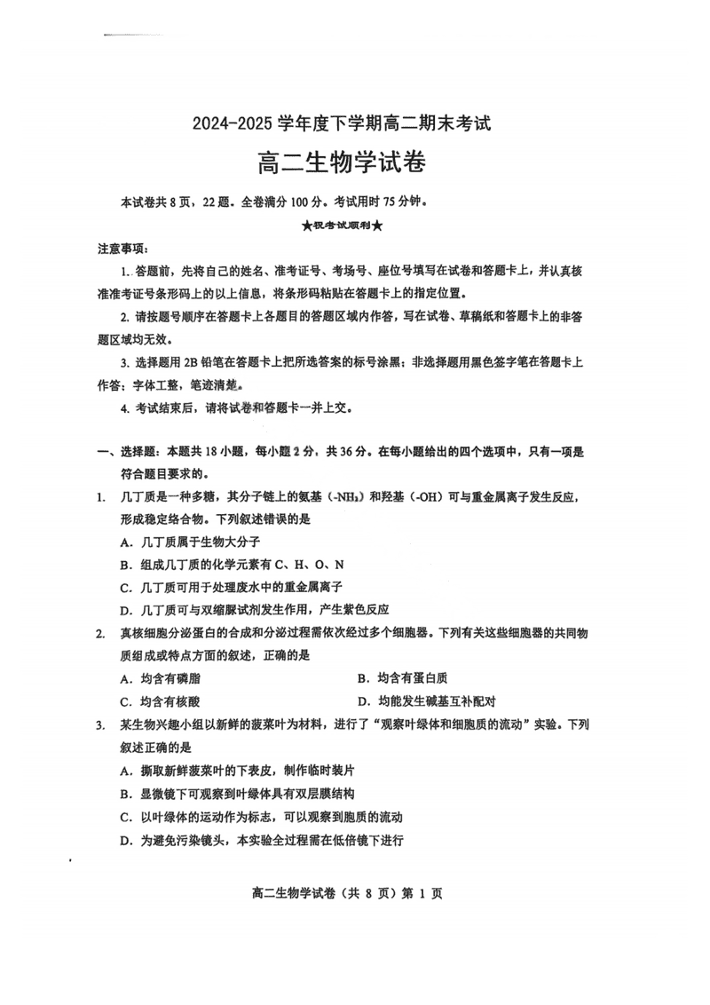 湖北七市州2024-2025学年度高二下学期期末生物试题及答案 时间:2025-07-18 湖北 理综试题 湖北七市州2024-2025学年度高二下学期期末生物考试已于近日开考,为方便考生考后及时查看考试情况,查漏补缺、弥补不足,本文整理了试题答案解析相关信息! 汇总:湖北七市州2024-2025学年度高二下学期期末 生物试题及答案解析