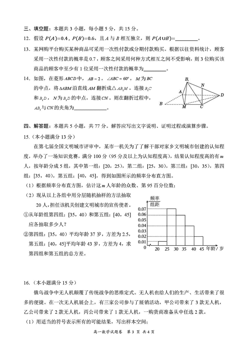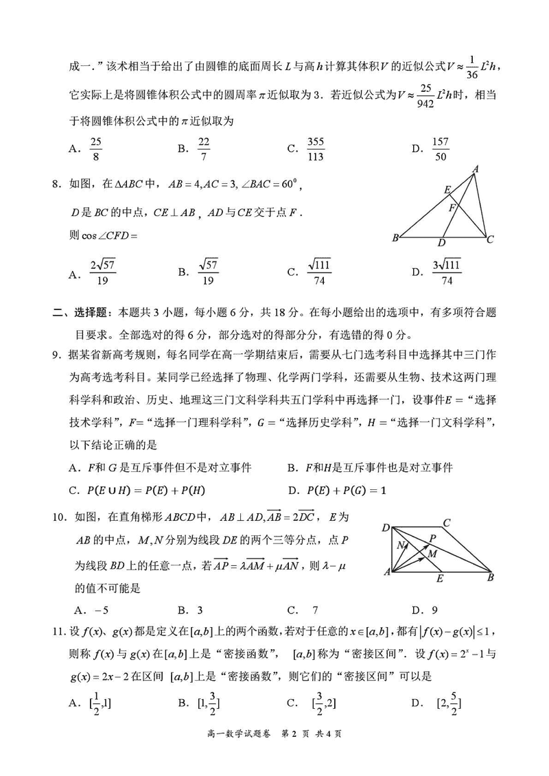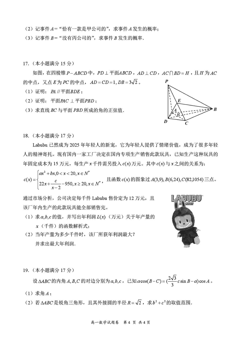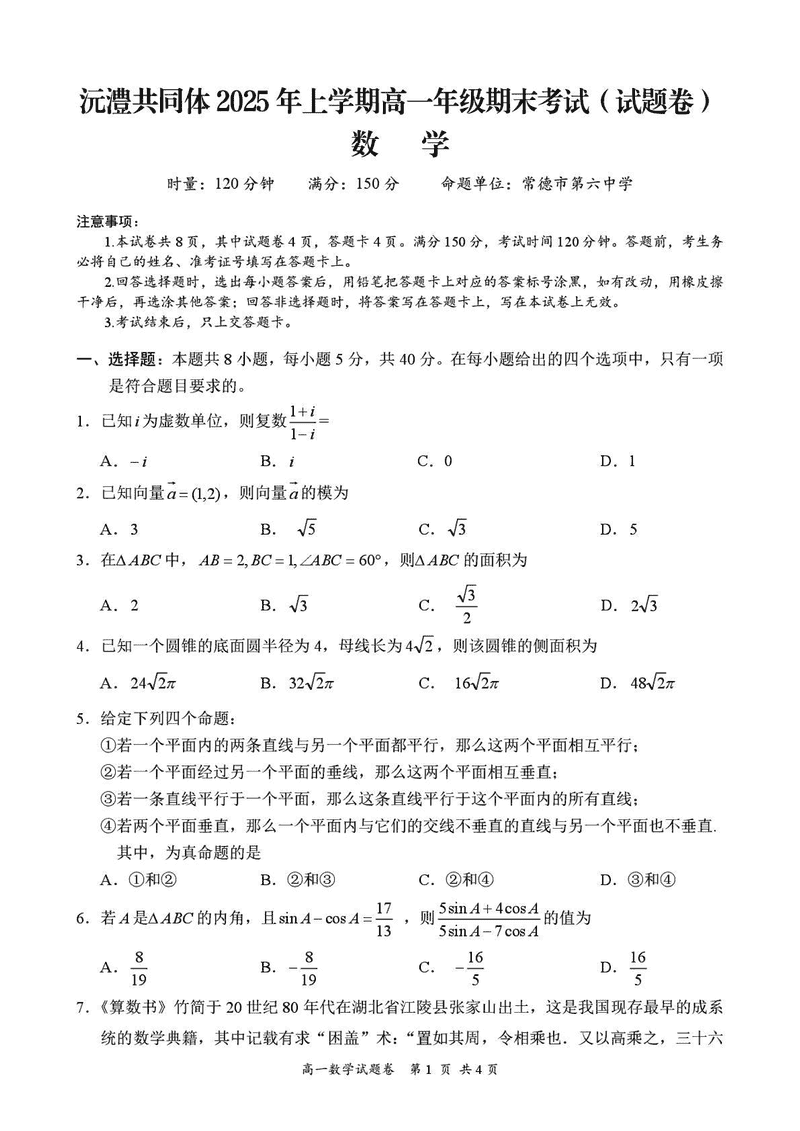 湖南沅澧共同体2025年高一下学期期末数学试题及答案 时间:2025-07-18 湖南 数学试题 湖南沅澧共同体2025年高一下学期期末数学考试已于近日开考,为方便考生考后及时查看考试情况,查漏补缺、弥补不足,本文整理了试题答案解析相关信息! 汇总:湖南沅澧共同体2025年高一下学期期末 数学试题及答案解析
