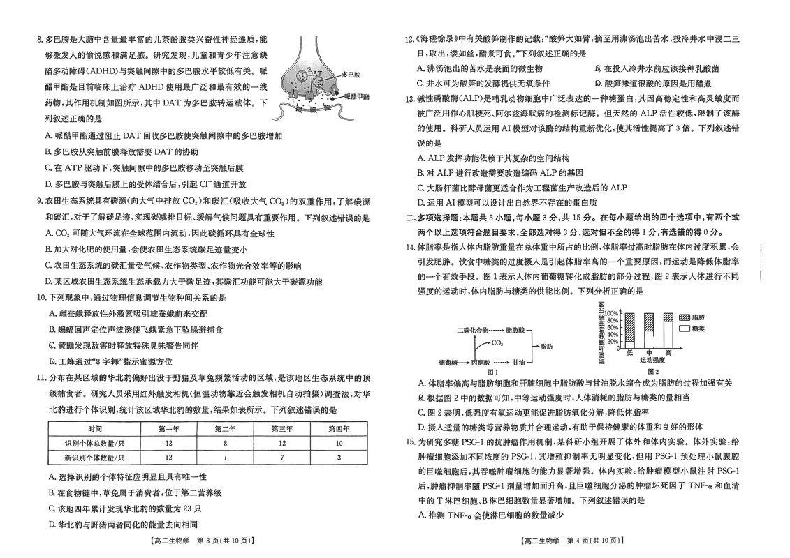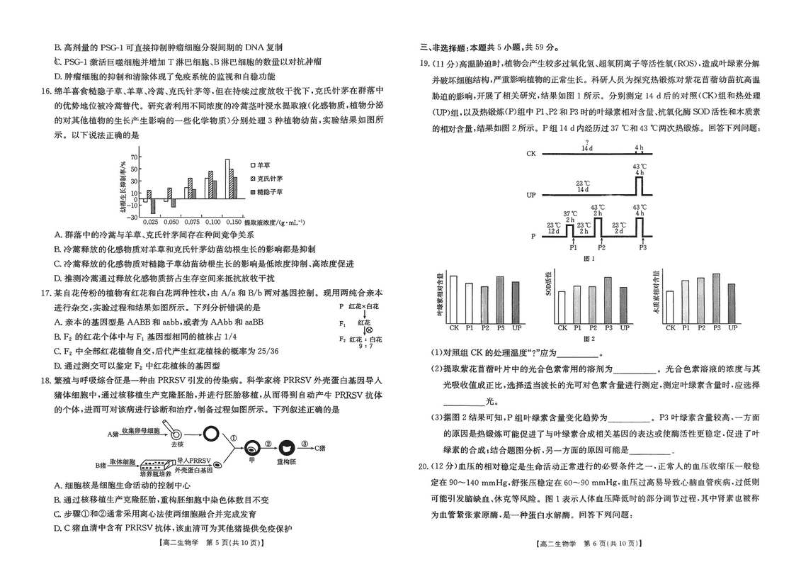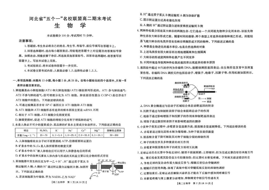 河北“五个一”名校联盟2025年高二7月期末生物试题及答案