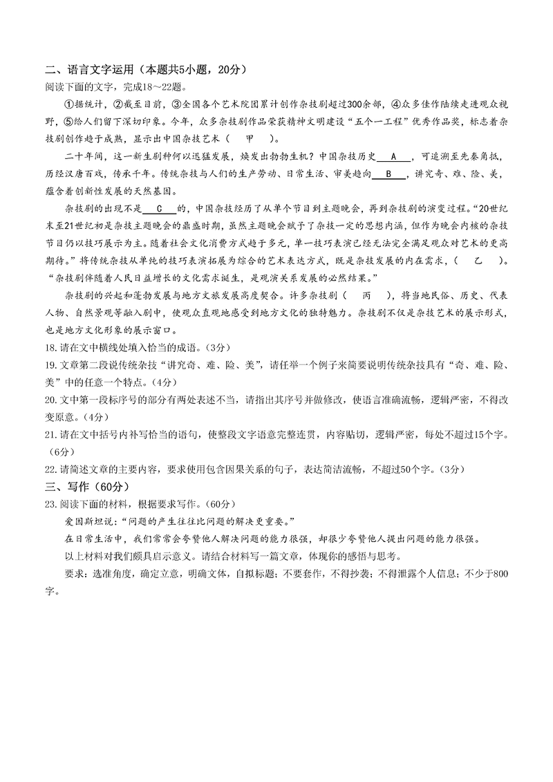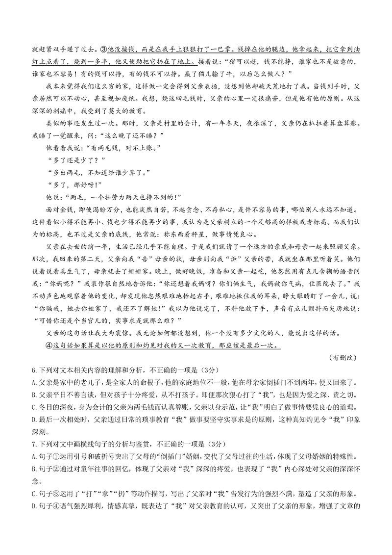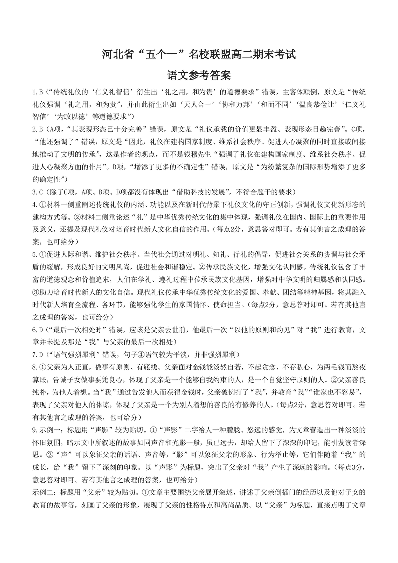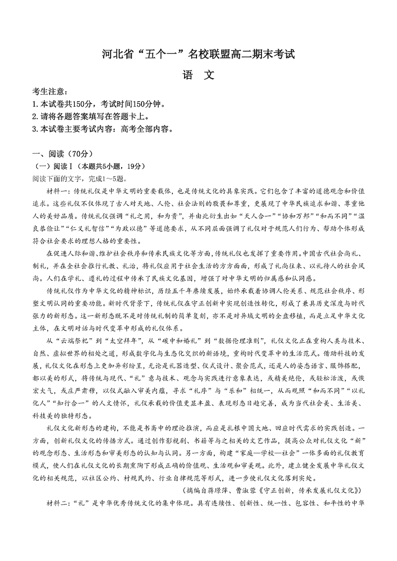 河北“五个一”名校联盟2025年高二7月期末语文试题及答案