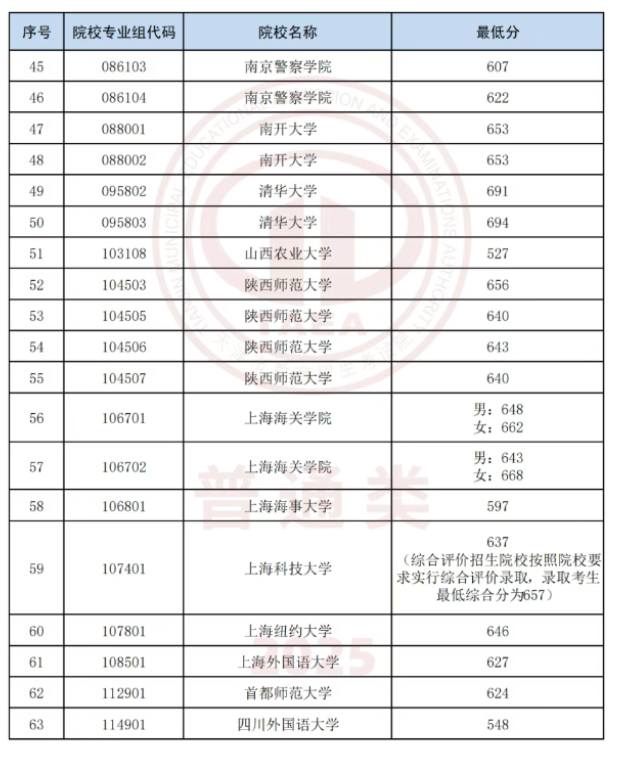 2025天津高考本科各大学录取分数线 含全国高校最低投档分