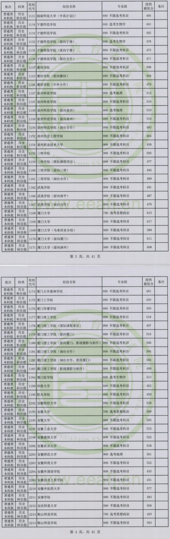 福建2025年普通类本科批常规志愿院校专业组投档最低分公布(历史科目组):