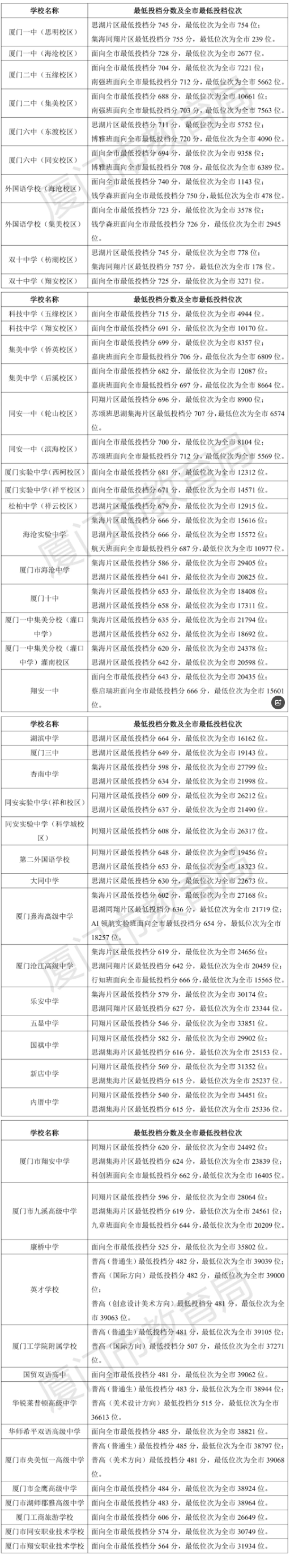 经厦门市中招领导小组研究同意,现公布今年中招普高普通生、定向生和综合高中班试点的最低投档分数和全市最低投档位次。今年中招职业类学校于7月24日下午录取,普高学校于7月25日上午录取,录取结果将于7月26日10:00前公布。