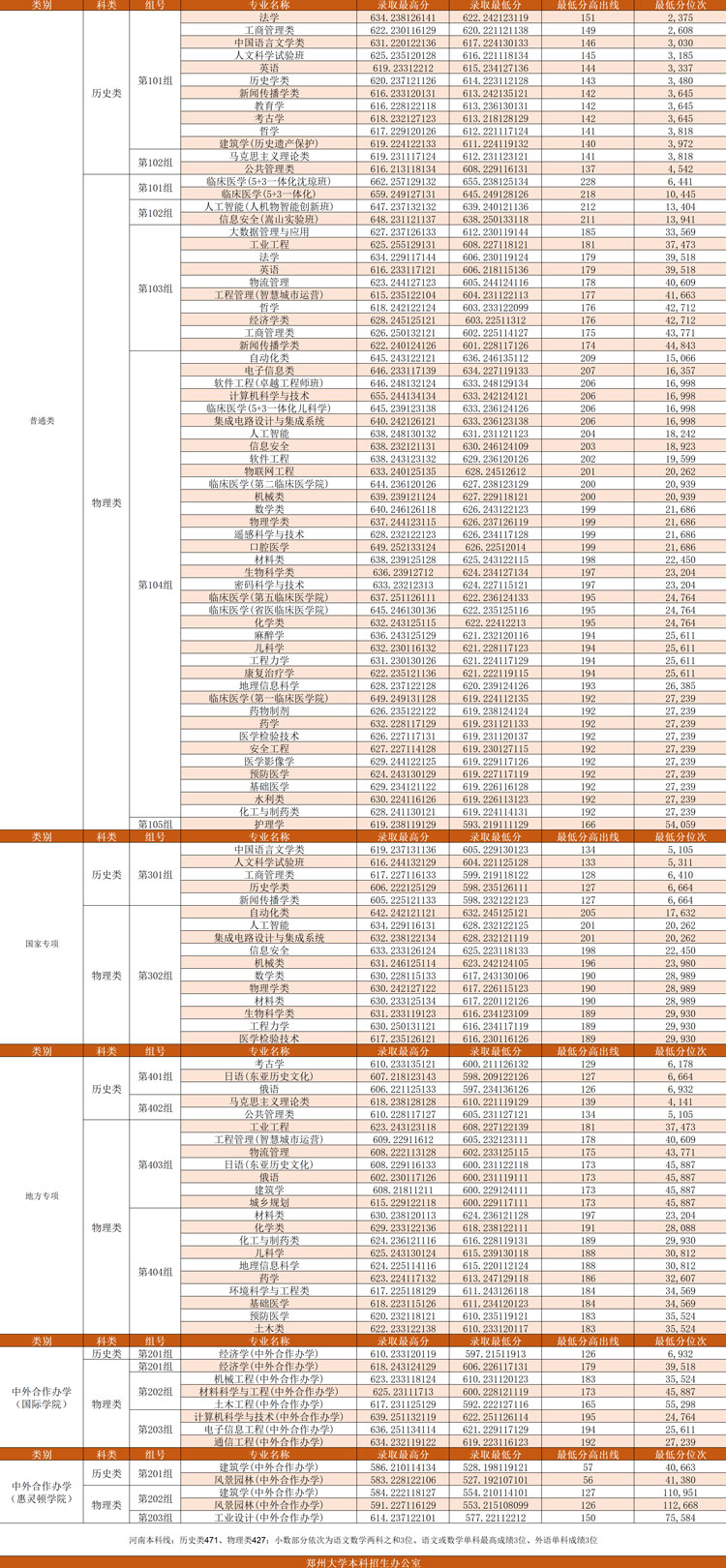 郑州大学在河南省内录取数据发布,具体内容如下: