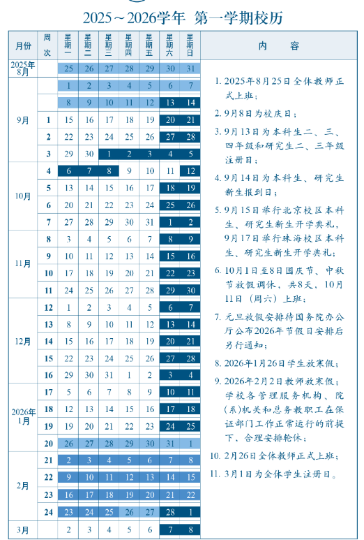 2025北京师范大学校历如下: