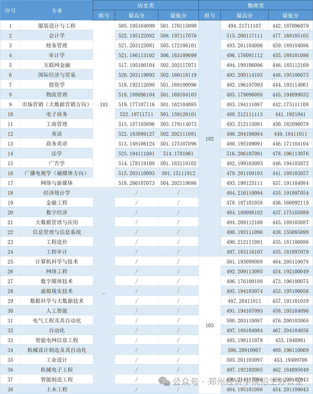 郑州航空工业管理学院2025年在河南录取分数线汇总