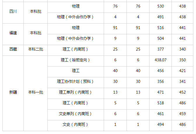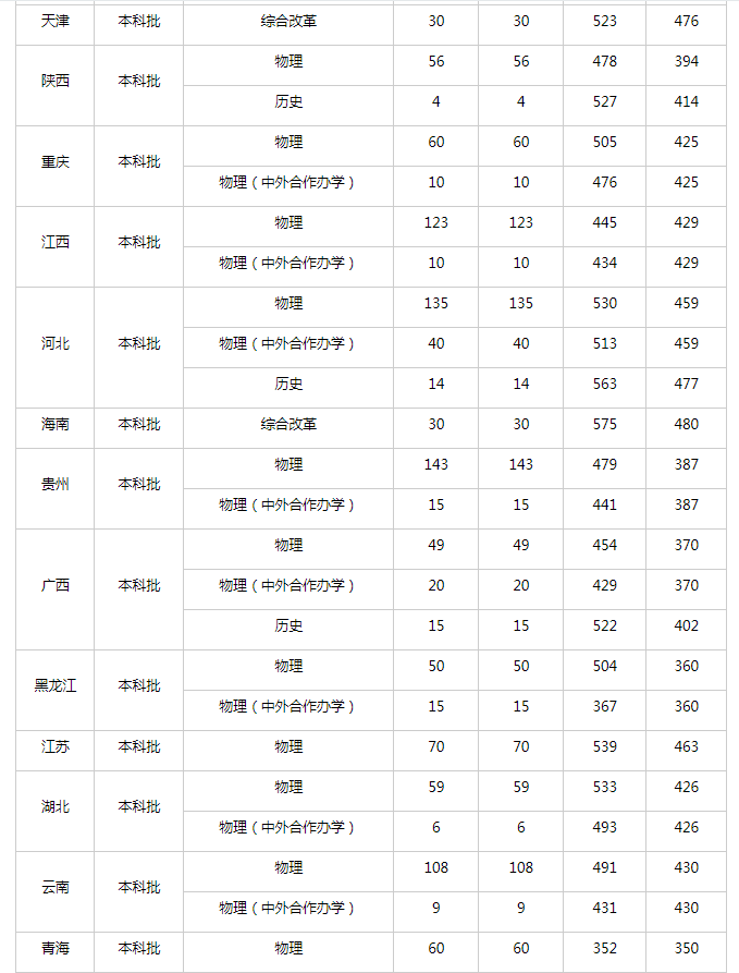 内蒙古物理最低分为500分,陕西物理最低分为478分,重庆物理最低分为505分,江西物理最低分为445分,河北物理最低分为530分。