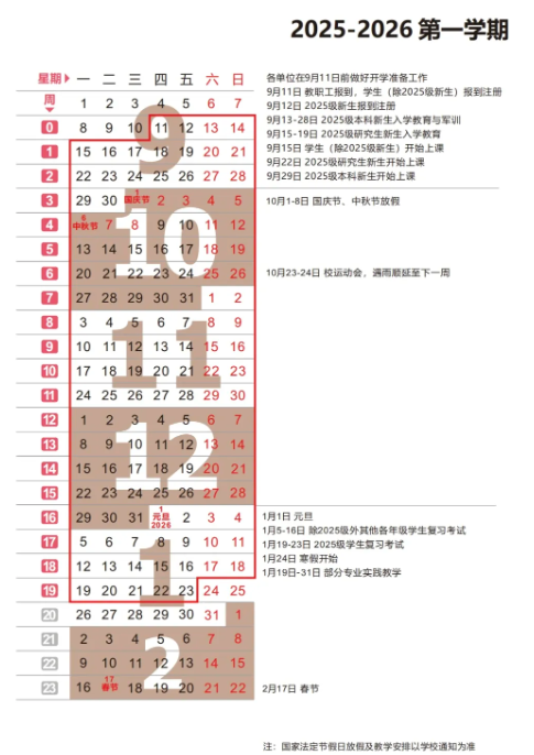 9月11日 教职工报到,学生(除2025级新生)报到注册