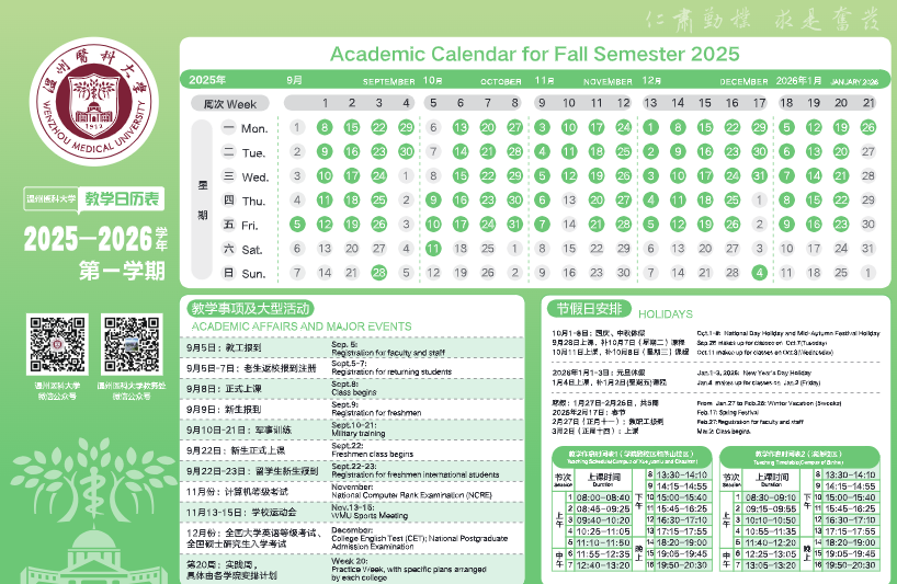 根据官网信息,2025年温州医科大学开学时间是:9月5-7日老生返校报到注册,9月9日新生报到8月10日-9月21日军事训练。新生需携带身份证原件及复印件、录取通知书、一寸照片4张、黑色签字笔等。
