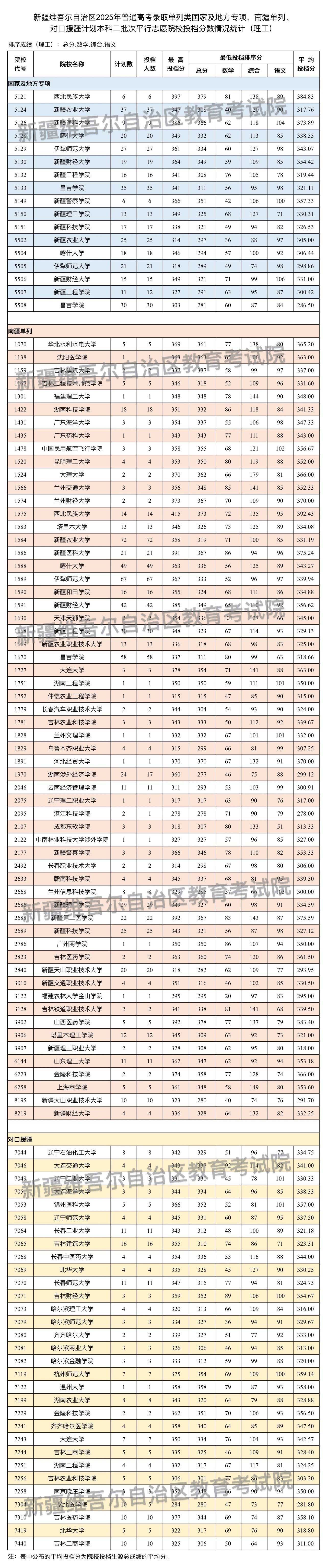 新疆维吾尔自治区2025年普通高校招生单列类国家及地方专项、南疆单列、对口援疆计划本科二批次投档情况