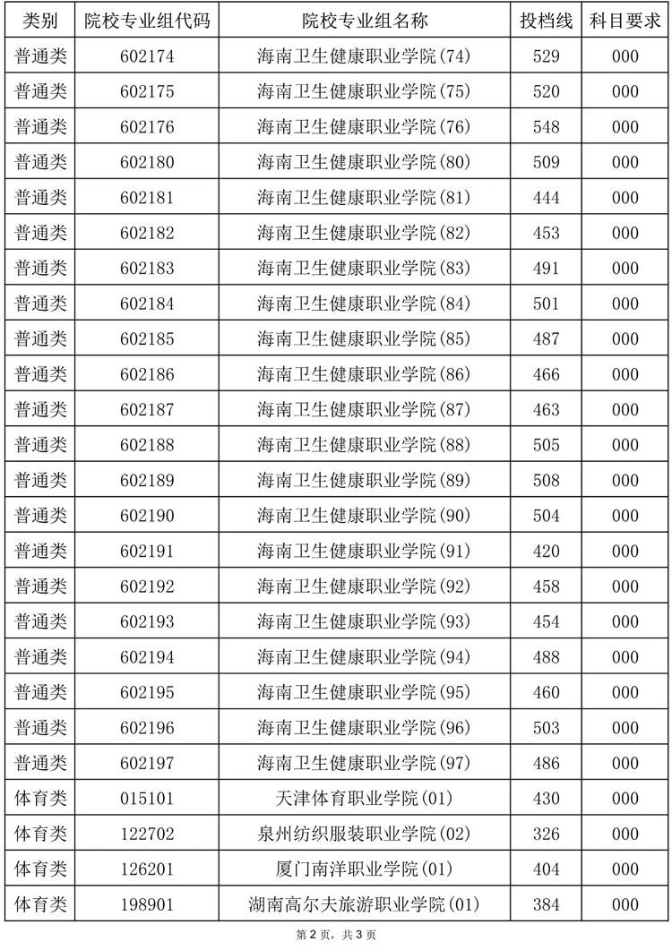 2025年海南省普通高校招生录取高职(专科)提前批普通类、体育类平行志愿院校专业组投档分数线 时间:2025-08-05 海南 高考新闻 2025年海南省普通高校招生录取高职(专科)提前批普通类、体育类平行志愿院校专业组投档分数线已发布,具体内容如下: