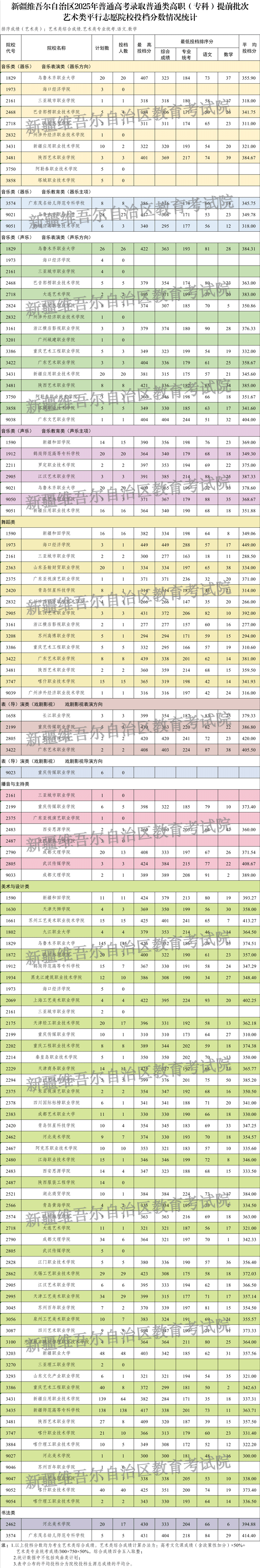 新疆维吾尔自治区2025年普通高校招生普通类高职(专科)提前批次艺术类投档情况