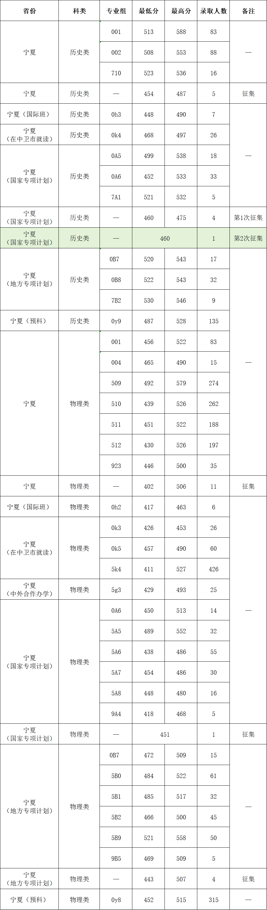 宁夏大学2025年宁夏回族自治区各专业组投档线公布,具体内容如下: