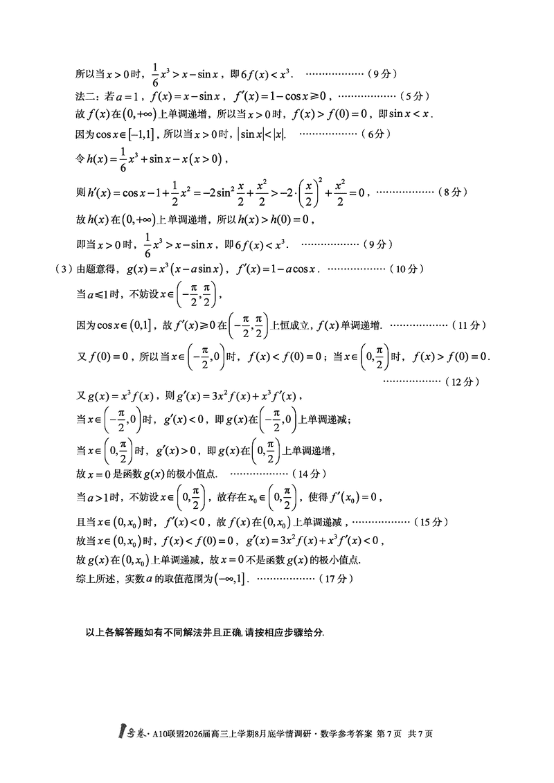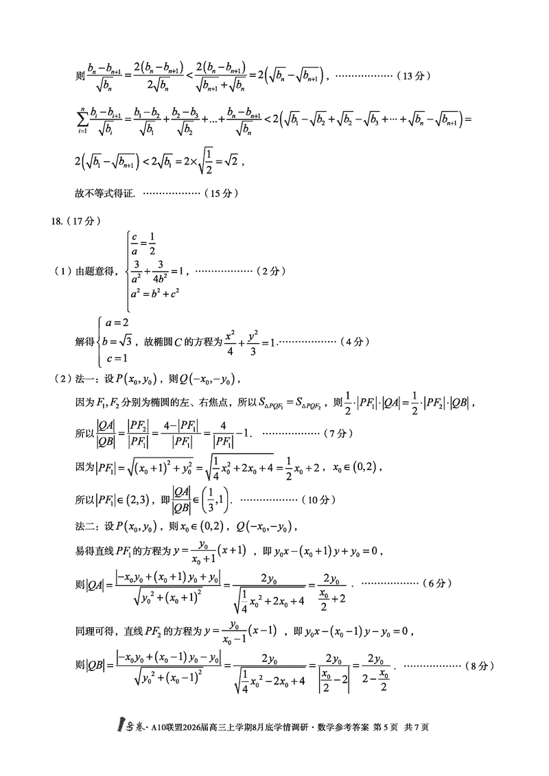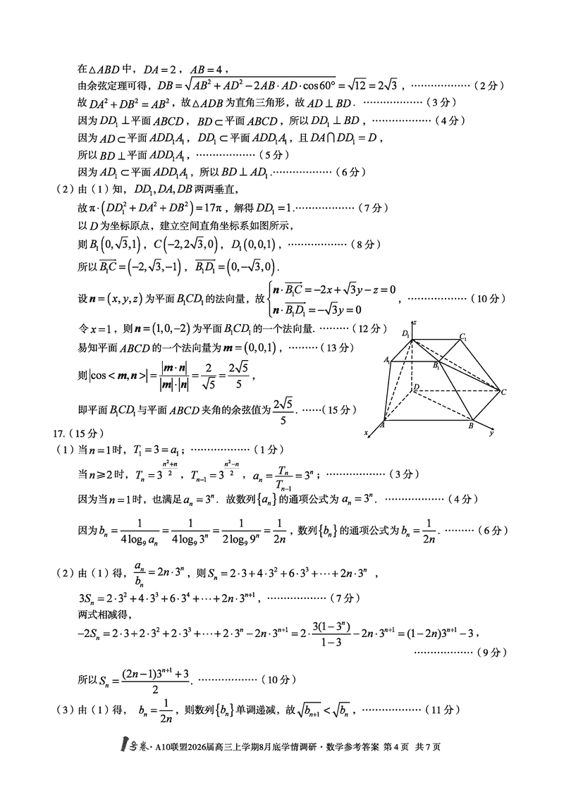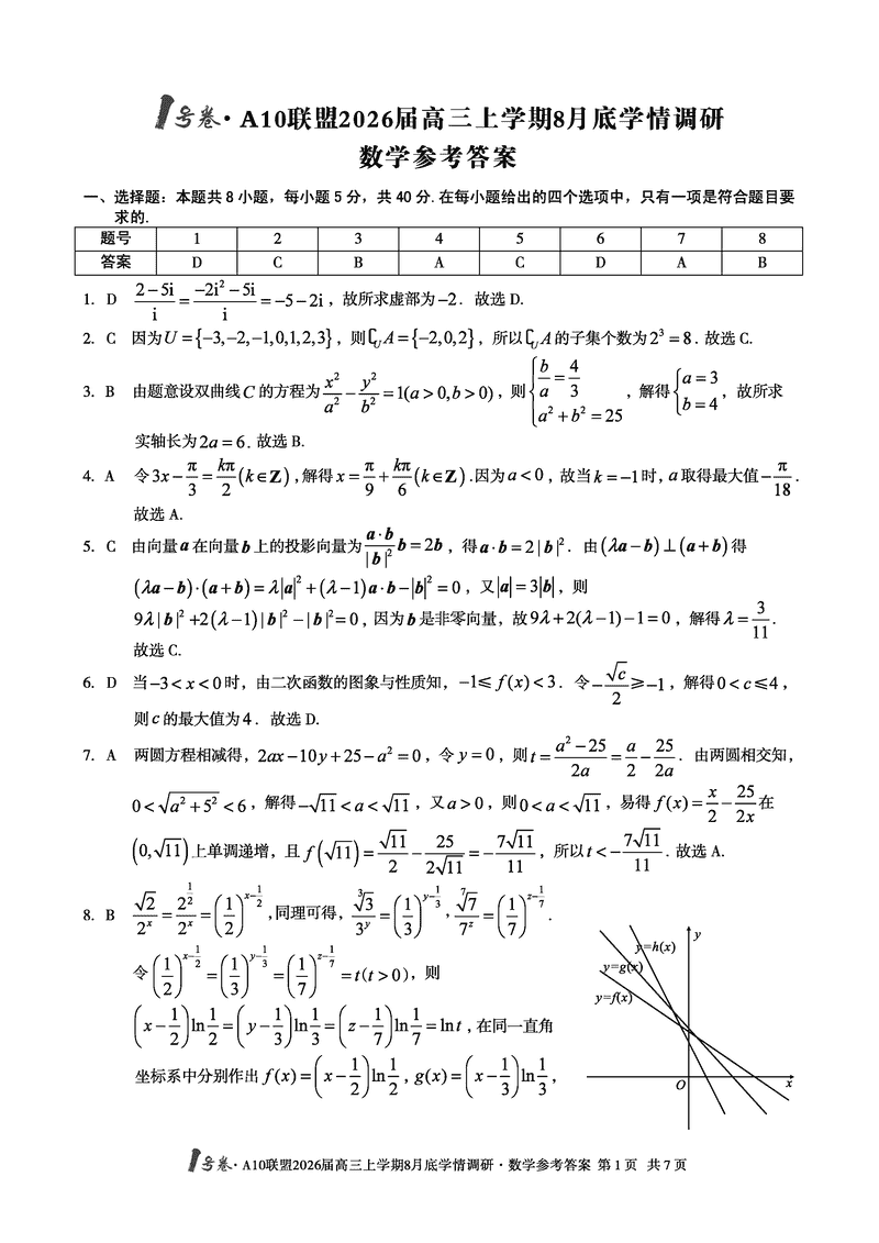安徽省1号卷·A10联盟2026届高三上学期8月底学情调研数学考试已于近日开考,为方便考生考后及时查看考试情况,查漏补缺、弥补不足,本文整理了试题答案解析相关信息!