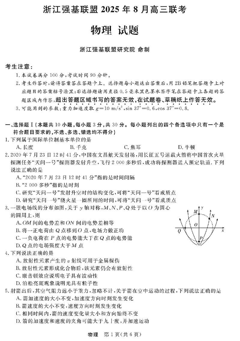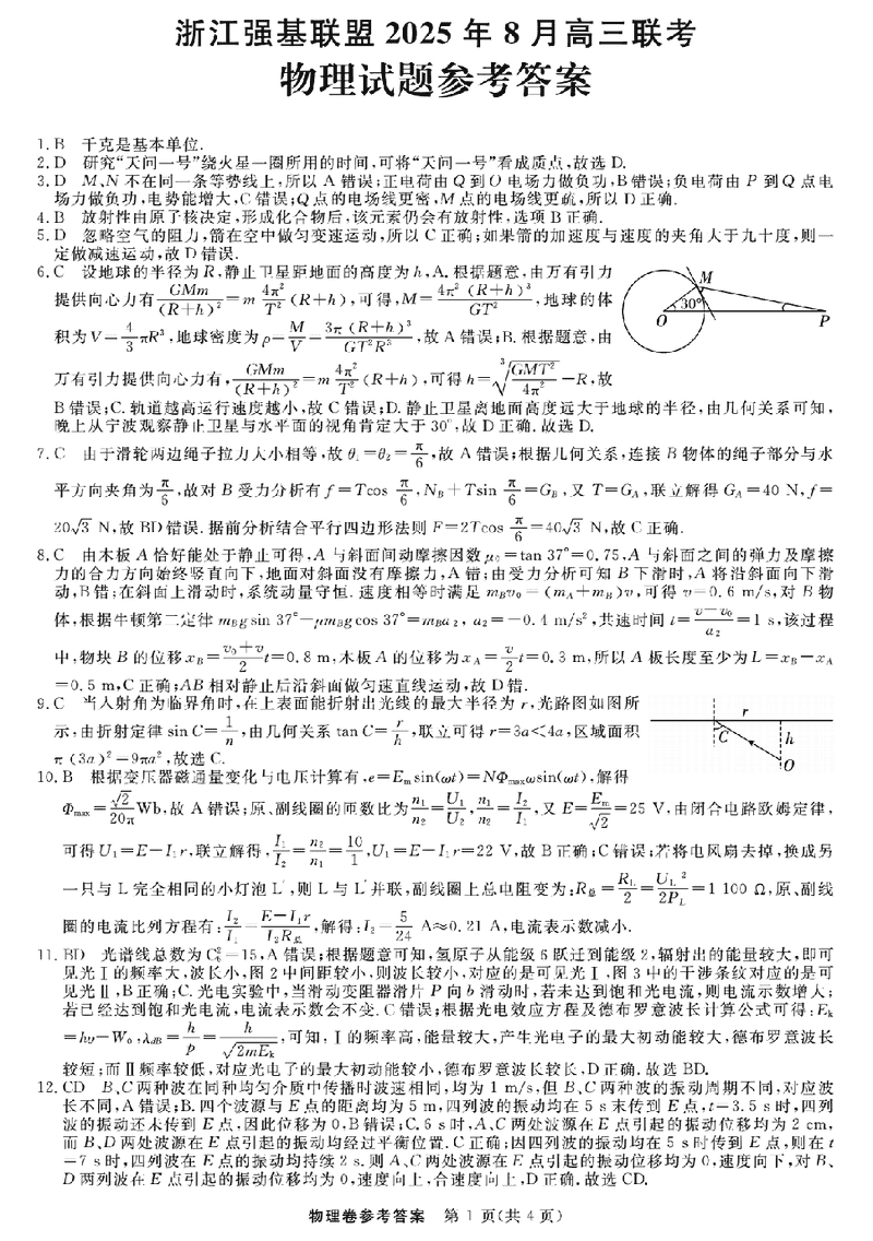 浙江强基联盟2025年8月高三联考物理试题及答案 时间:2025-08-30 浙江 理综试题 浙江强基联盟2025年8月高三联考物理考试已于近日开考,为方便考生考后及时查看考试情况,查漏补缺、弥补不足,本文整理了试题答案解析相关信息! 汇总:浙江强基联盟2025年8月高三联考 物理试题及答案解析