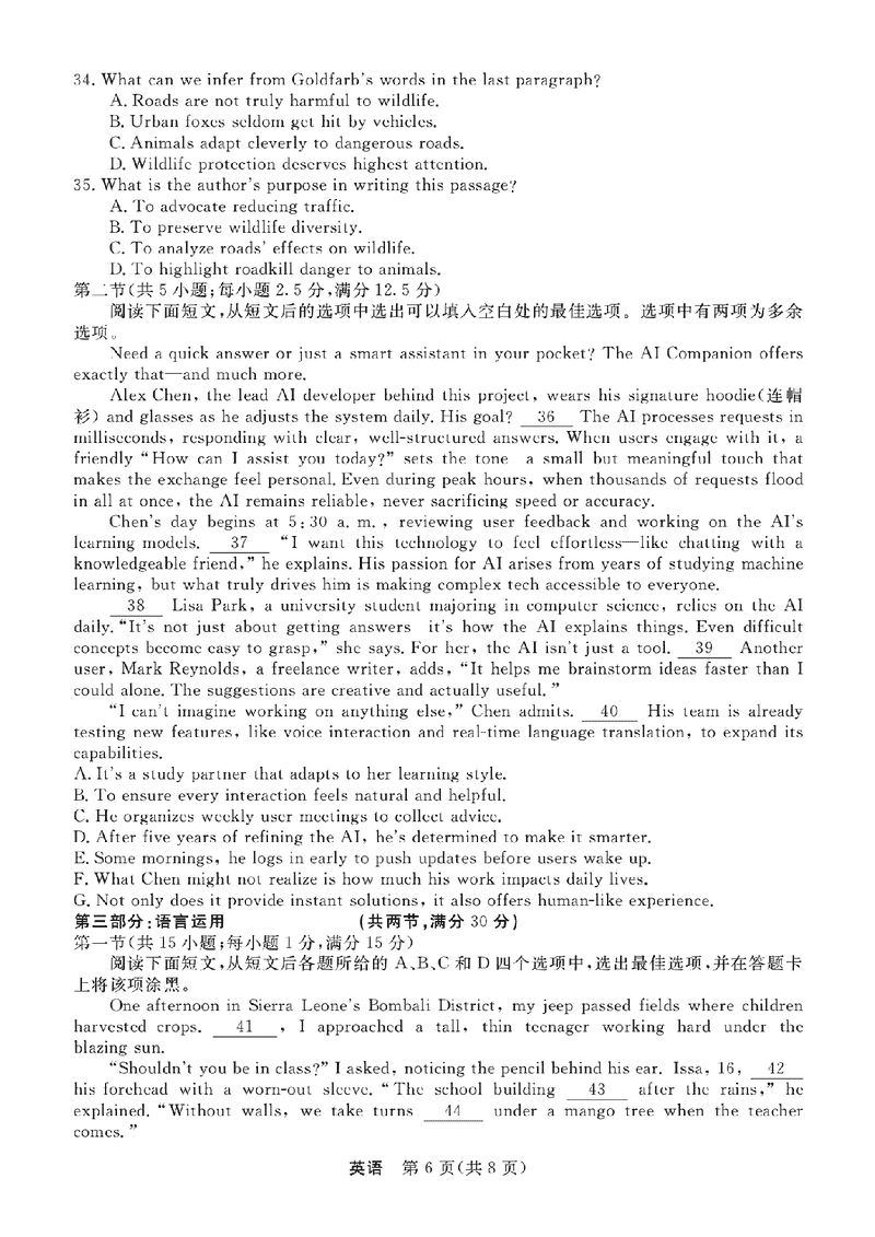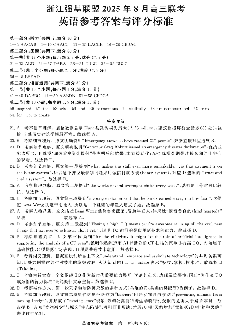 浙江强基联盟2025年8月高三联考英语试题及答案 时间:2025-08-30 浙江 英语试题 浙江强基联盟2025年8月高三联考英语考试已于近日开考,为方便考生考后及时查看考试情况,查漏补缺、弥补不足,本文整理了试题答案解析相关信息! 汇总:浙江强基联盟2025年8月高三联考 英语试题及答案解析