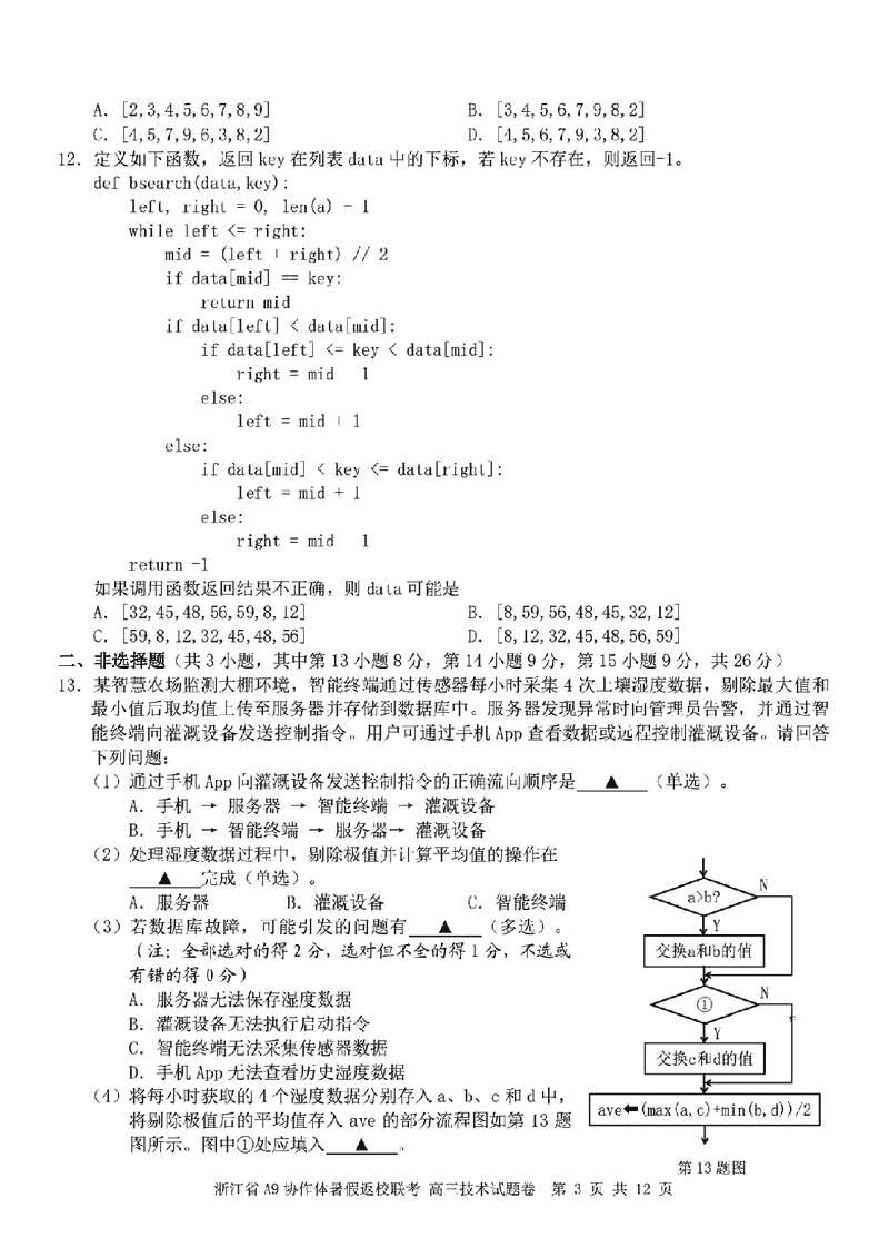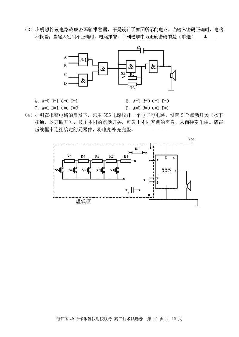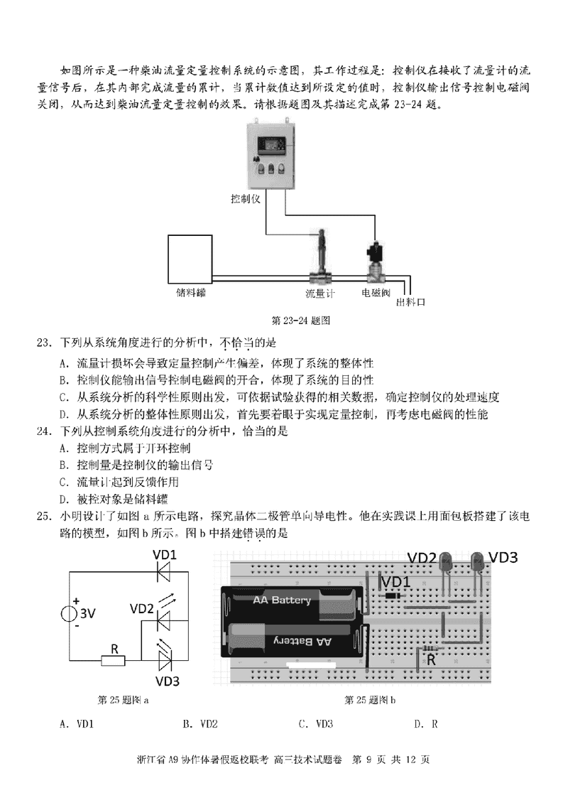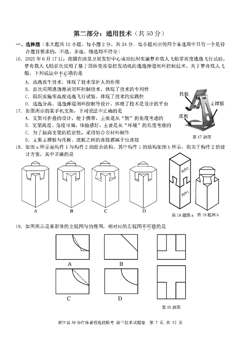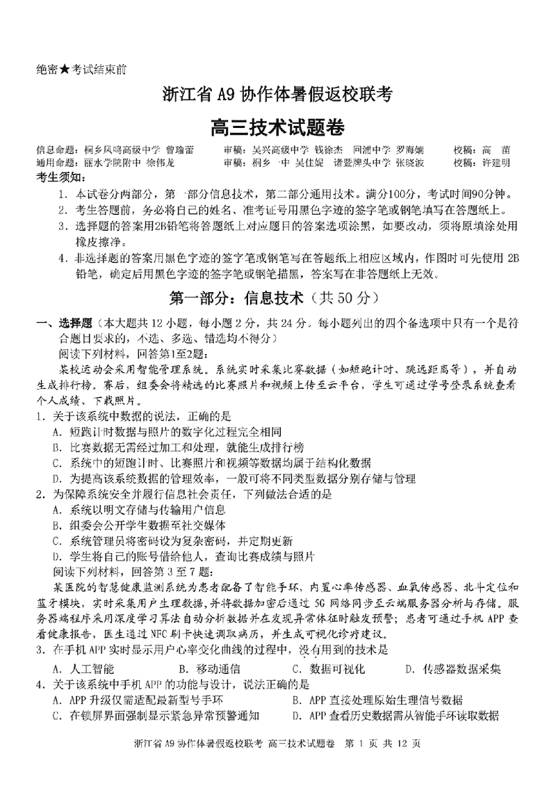 浙江A9协作体2026届高三暑假返校联考技术试题及答案 时间:2025-08-30 浙江 理综试题 浙江省A9协作体2026届高三暑假返校联考技术考试已于近日开考,为方便考生考后及时查看考试情况,查漏补缺、弥补不足,本文整理了试题答案解析相关信息! 汇总:浙江省A9协作体2026届高三暑假返校联考 技术试题及答案解析