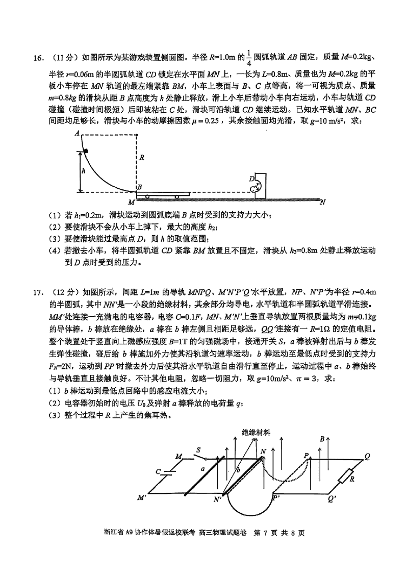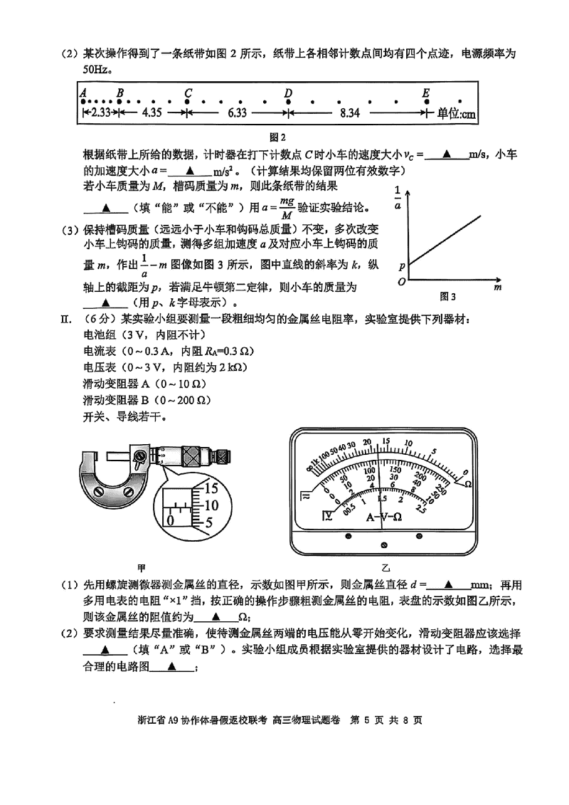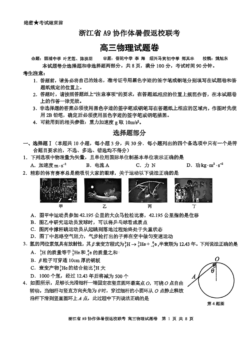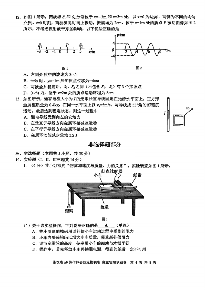 浙江A9协作体2026届高三暑假返校联考物理试题及答案 时间:2025-08-30 浙江 理综试题 浙江省A9协作体2026届高三暑假返校联考物理考试已于近日开考,为方便考生考后及时查看考试情况,查漏补缺、弥补不足,本文整理了试题答案解析相关信息! 汇总:浙江省A9协作体2026届高三暑假返校联考 物理试题及答案解析