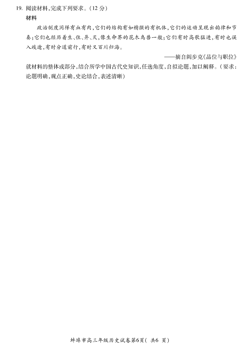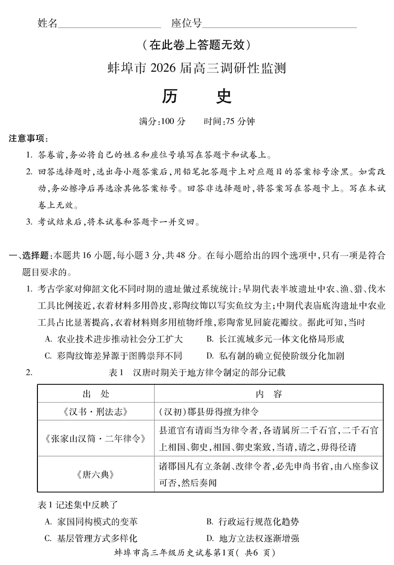 蚌埠市2026届高三上学期调研性监测历史试题及答案 时间:2025-08-30 安徽 文综试题 安徽蚌埠市2026届高三上学期调研性监测历史考试已于近日开考,为方便考生考后及时查看考试情况,查漏补缺、弥补不足,本文整理了试题答案解析相关信息! 汇总:蚌埠市2026届高三上学期调研性监测试题及答案汇总 历史试题及答案解析