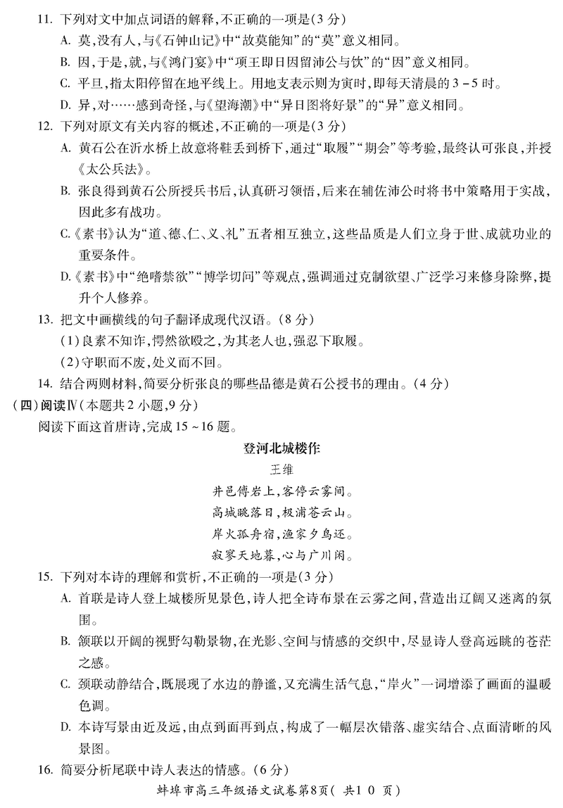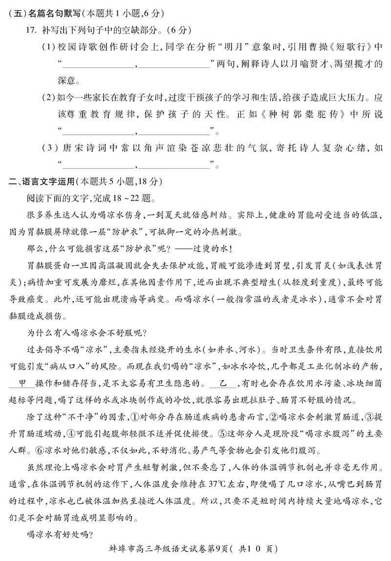 蚌埠市2026届高三上学期调研性监测语文试题及答案 时间:2025-08-30 安徽 语文试题 安徽蚌埠市2026届高三上学期调研性监测语文考试已于近日开考,为方便考生考后及时查看考试情况,查漏补缺、弥补不足,本文整理了试题答案解析相关信息! 汇总:蚌埠市2026届高三上学期调研性监测试题及答案汇总 语文试题及答案解析