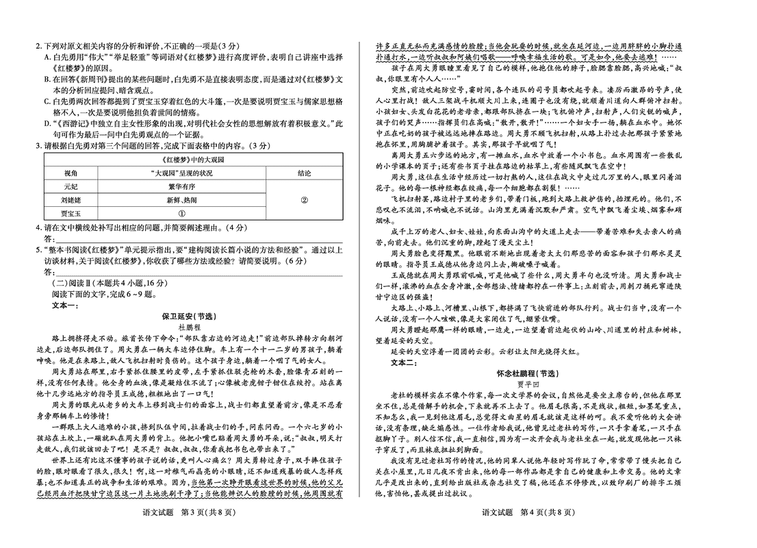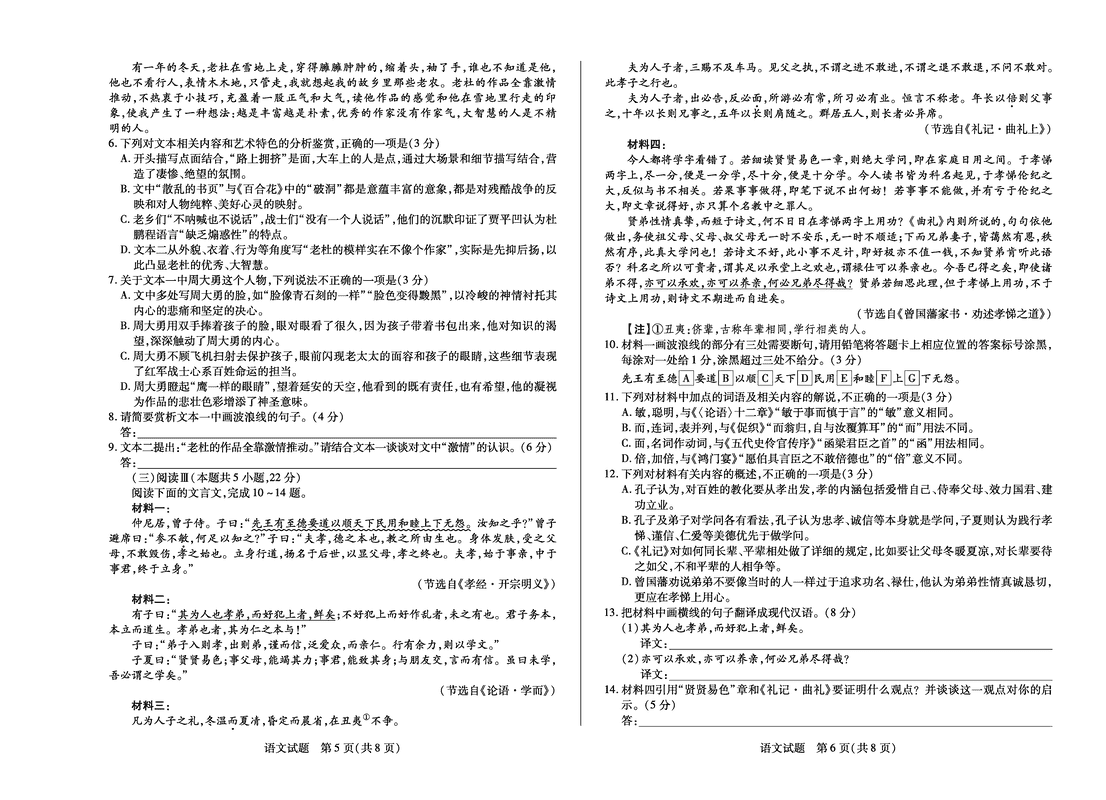 安徽天一大联考2026届高三8月秋季检测语文试题及答案