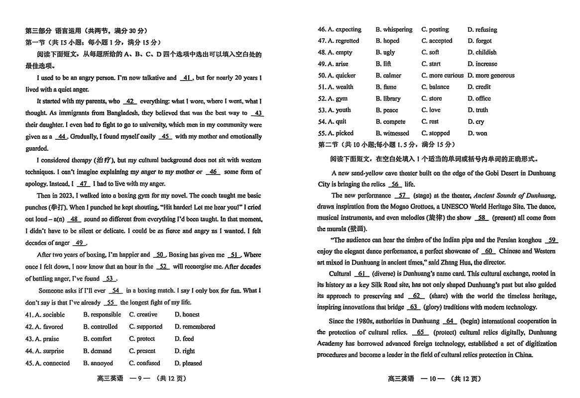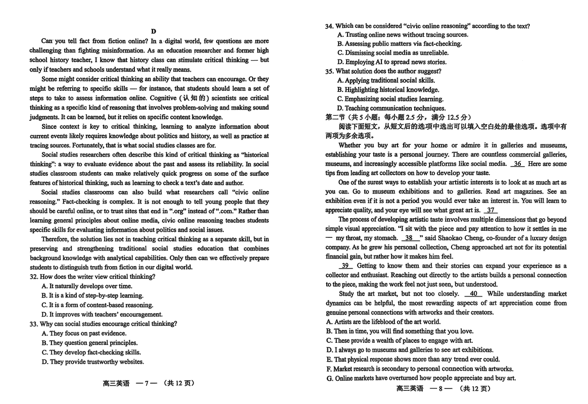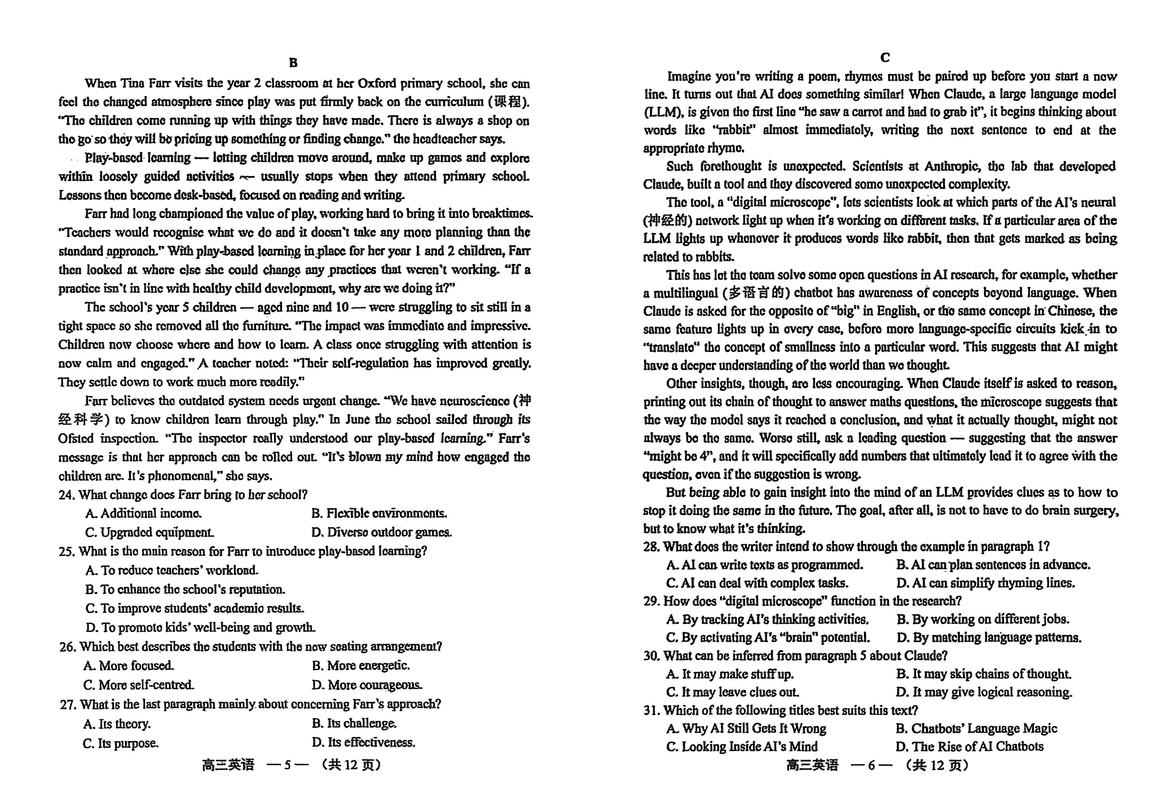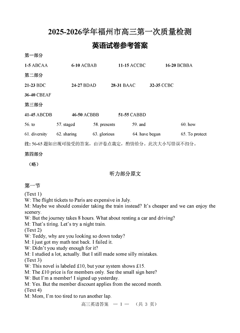 2025-2026学年福州市高三第一次质检英语试题及答案