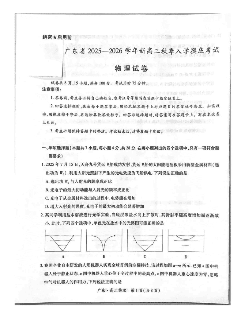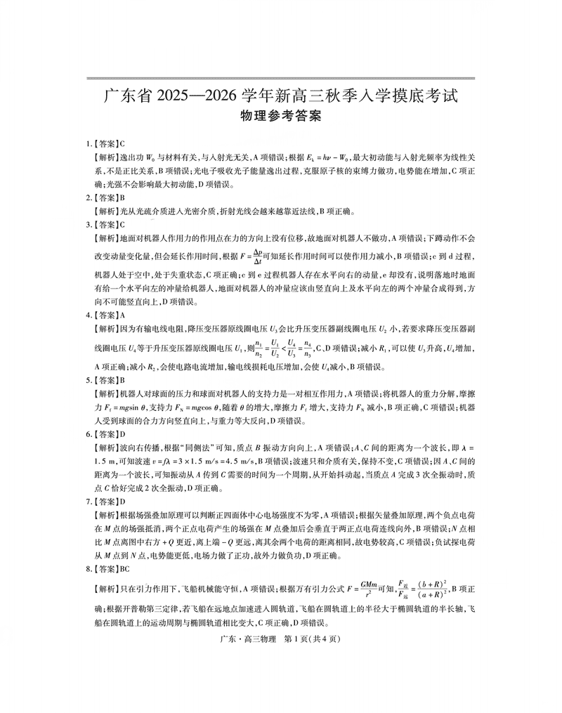 广东省上进联考2025-2026学年新高三秋季入学摸底物理考试已于近日开考,为方便考生考后及时查看考试情况,查漏补缺、弥补不足,本文整理了试题答案解析相关信息!