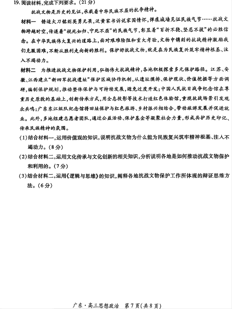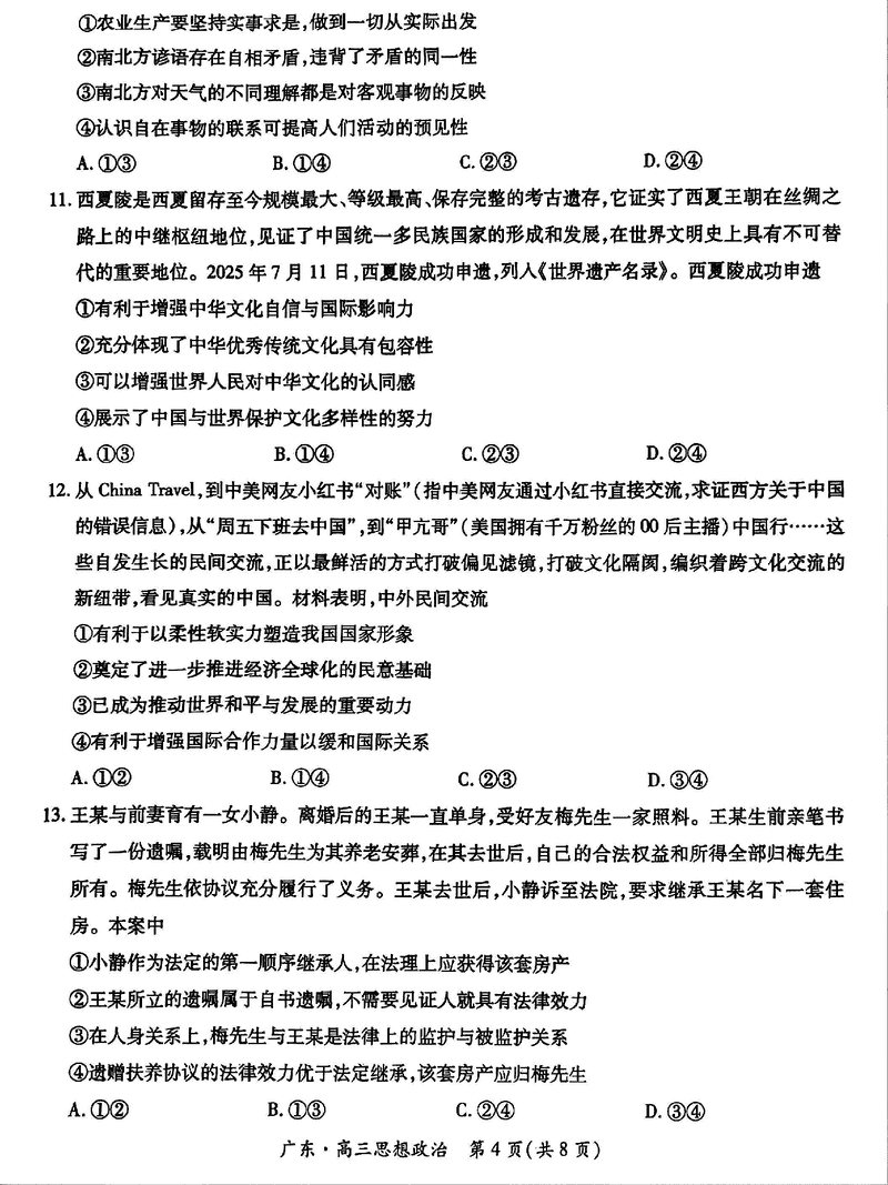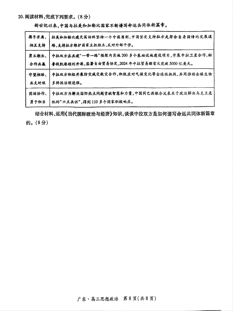 广东上进联考2025-2026学年新高三秋季入学考政治试题及答案