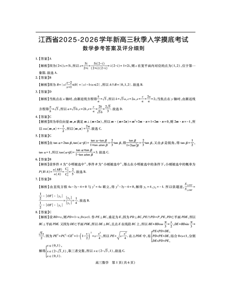 江西省上进联考2025-2026学年新高三秋季入学摸底数学考试已于近日开考,为方便考生考后及时查看考试情况,查漏补缺、弥补不足,本文整理了试题答案解析相关信息!