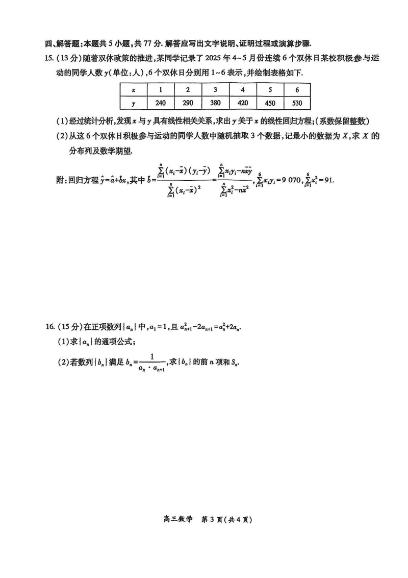 江西上进联考2025-2026学年新高三秋季入学摸底考数学试题及答案