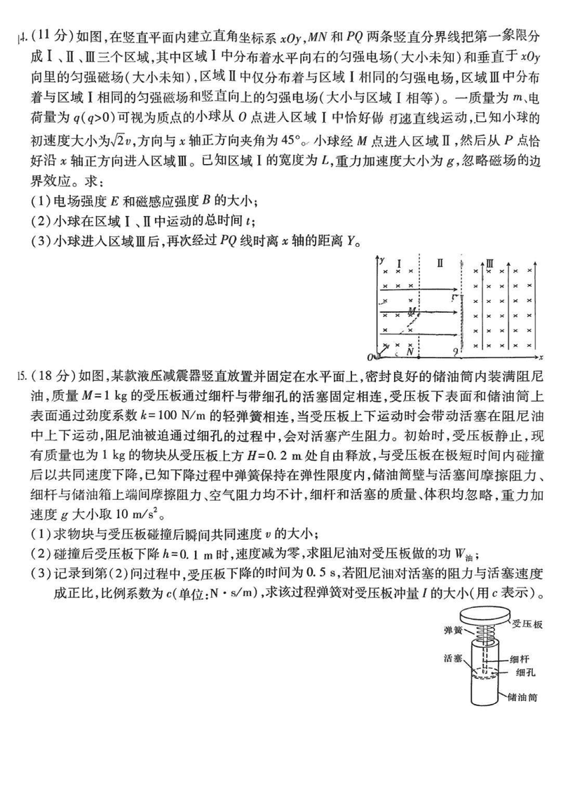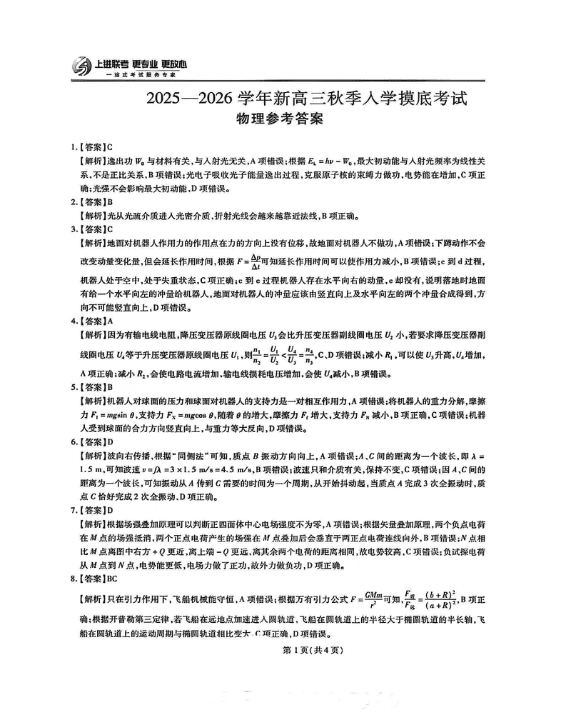 江西上进联考2025-2026学年新高三秋季入学摸底考物理试题及答案