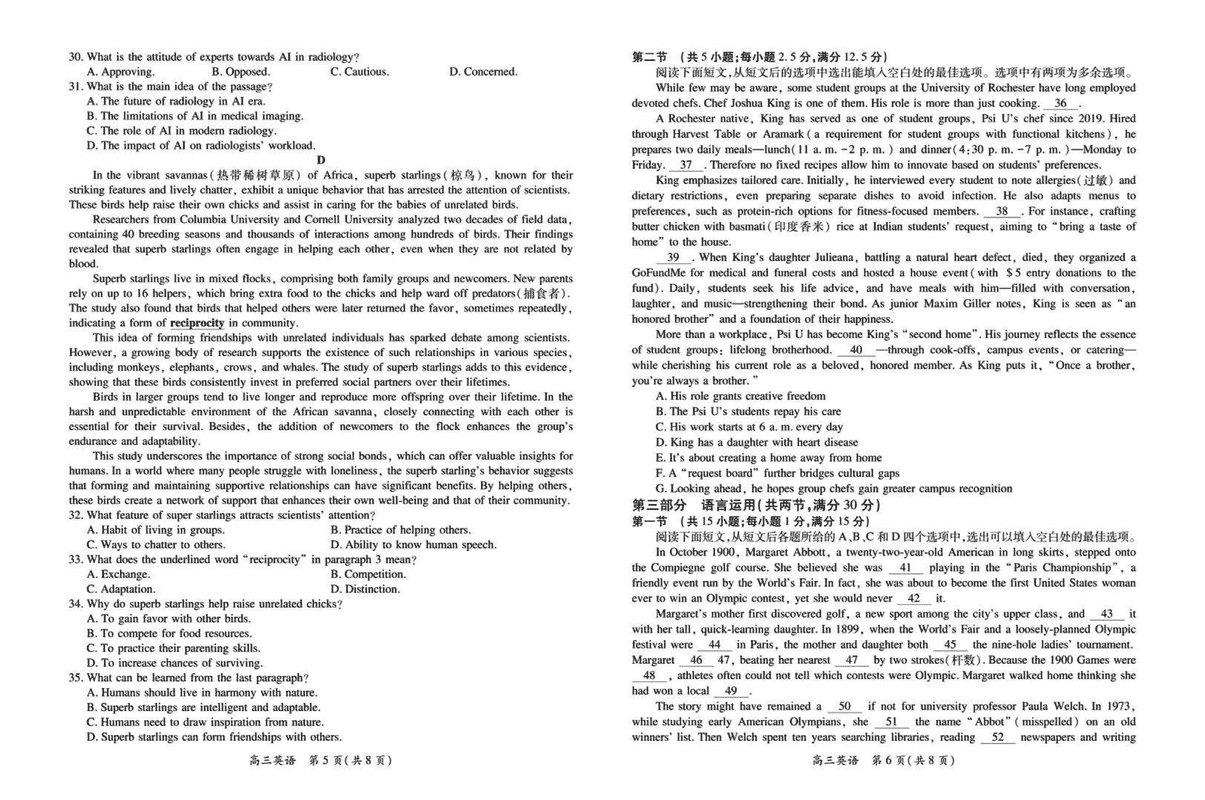 江西上进联考2025-2026学年新高三秋季入学摸底考英语试题及答案