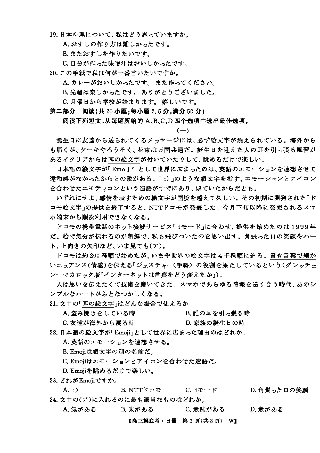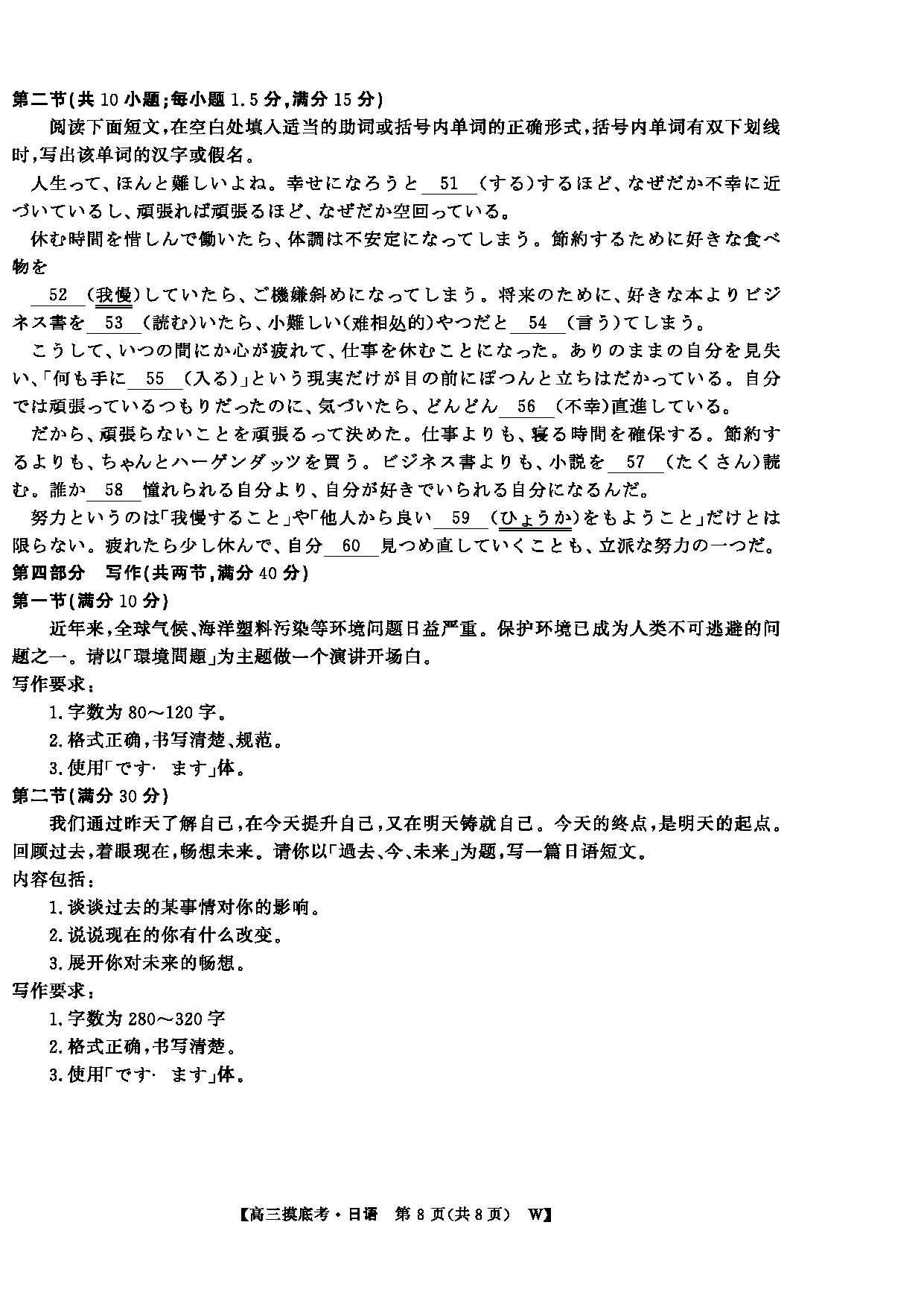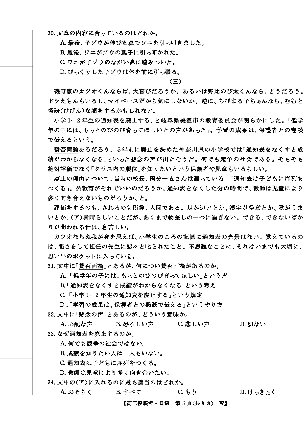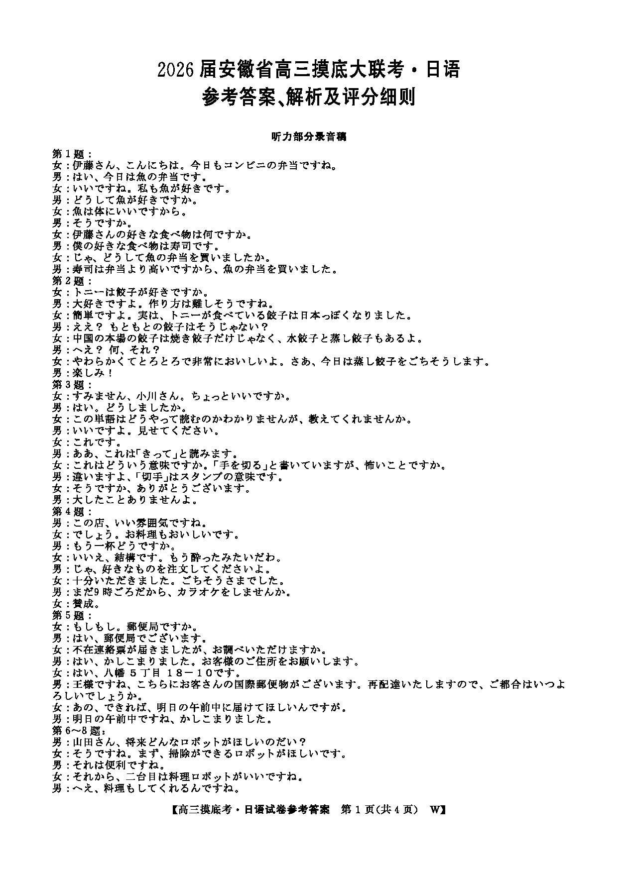 皖南八校2026届高三上学期8月摸底大联考日语试题及答案