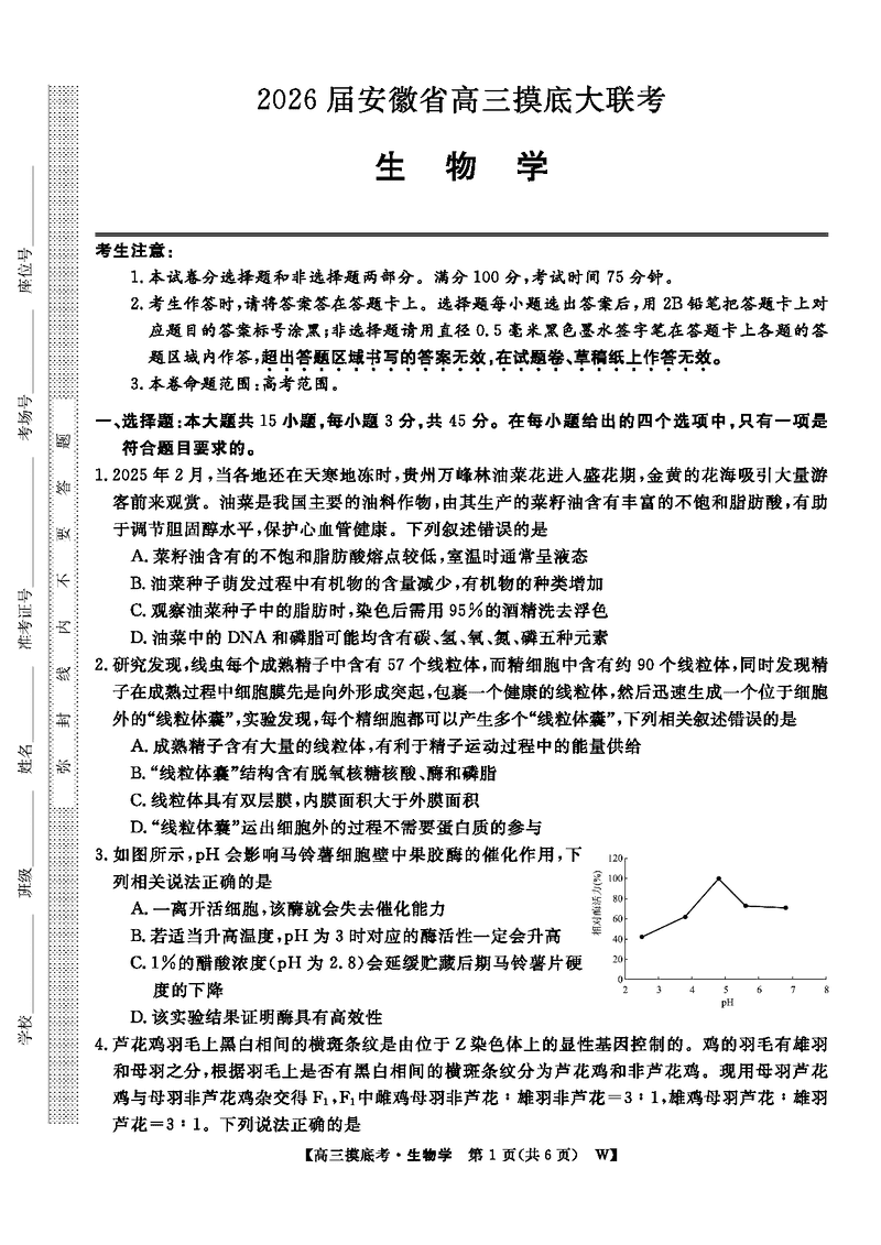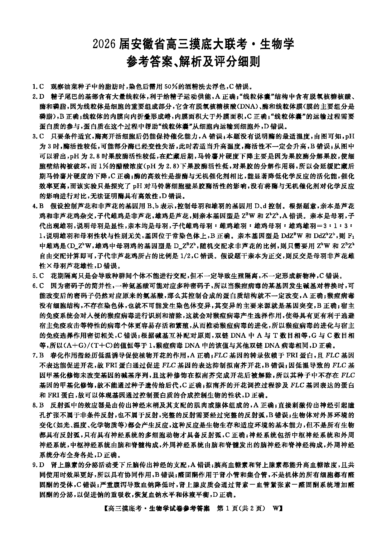 皖南八校2026届高三上学期8月摸底大联考生物考试已于近日开考,为方便考生考后及时查看考试情况,查漏补缺、弥补不足,本文整理了试题答案解析相关信息!