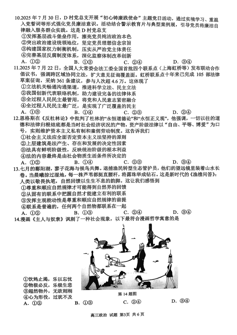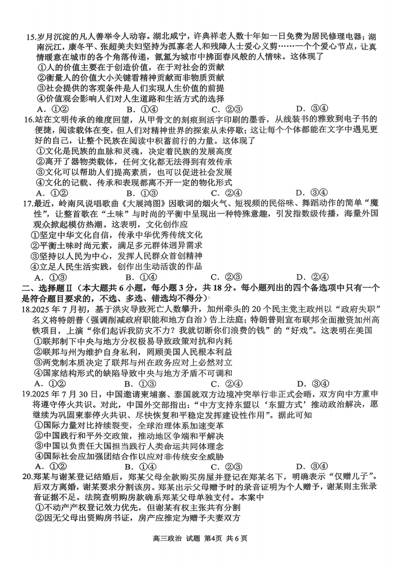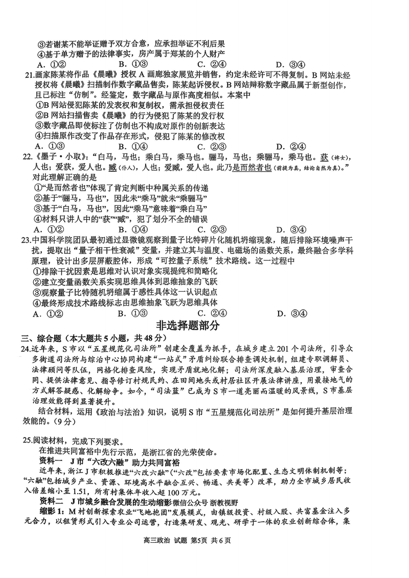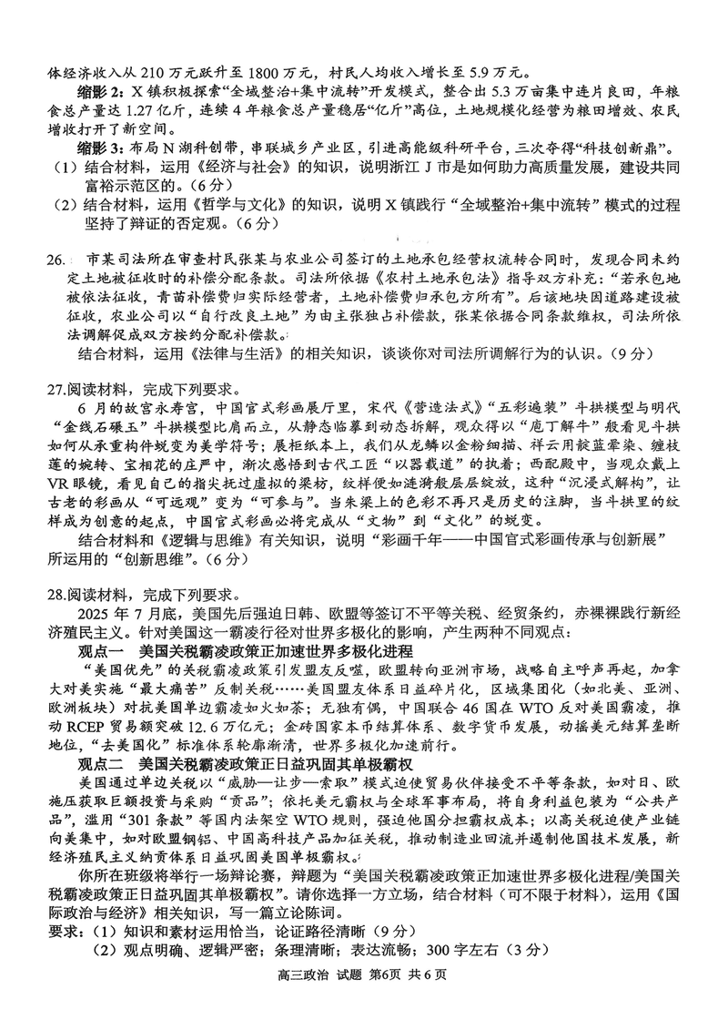 2025年8月浙江七彩阳光新高考研究联盟暑假返校联考政治试题及答案 时间:2025-08-31 浙江 文综试题 浙江省七彩阳光新高考研究联盟2026届高三上学期返校联考政治考试已于近日开考,为方便考生考后及时查看考试情况,查漏补缺、弥补不足,本文整理了试题答案解析相关信息! 汇总:2025年8月浙江七彩阳光新高考研究联盟暑假返校联考 政治试题及答案解析