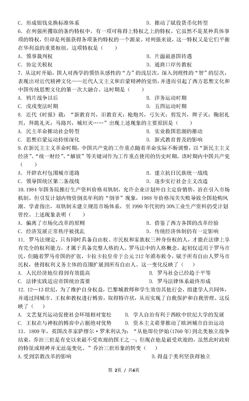 江苏省南京市六校联合体2026届高三上学期8月学情调研历史考试已于近日开考,为方便考生考后及时查看考试情况,查漏补缺、弥补不足,本文整理了试题答案解析相关信息!